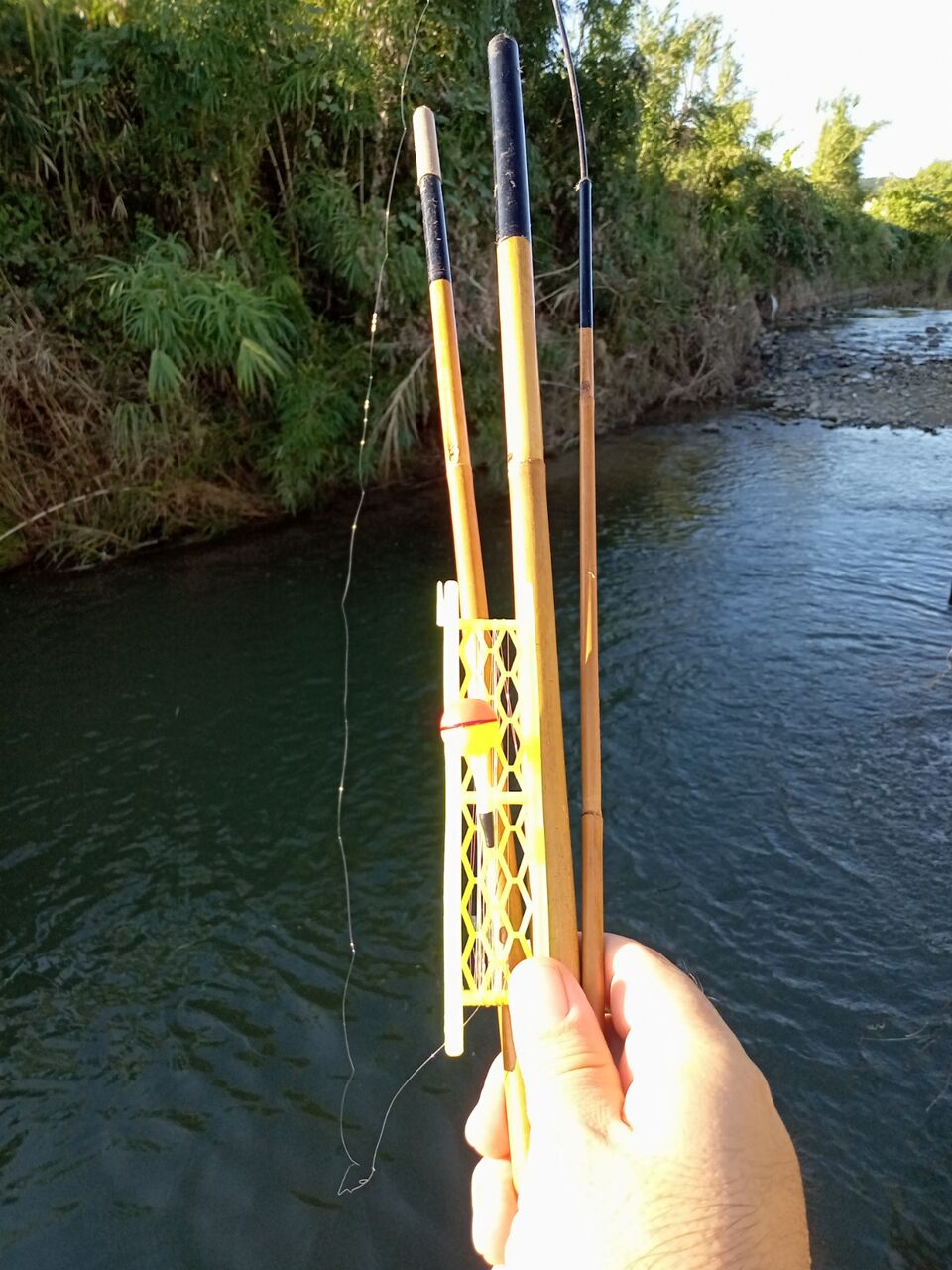 ひおきの食 ひおきの暮らし 日吉の自然を喰う 川編(竹竿とエサは焼酎団子で魚を釣るの巻) 2021.9.3 せっぺとべお せっぺとべおです。自然豊かな、日置市の中でも、日吉にフォーカスしていきます。今回は、川に魚釣りに行ってきました。道具は、幼少期から使っている、竹竿で、いざ、開始!!もちろん、エサは小麦粉に焼酎を混ぜて、耳たぶほどの固さにした、焼酎団子(通称、ショツダンゴ)。 狙うは、モッゴロ、アカヒラ(正式名は知りません。) さて、釣果は、…。 30分でこんな感じでした。 さて、帰って、調理して食しましょうかね。では、食べるところは、続編で。