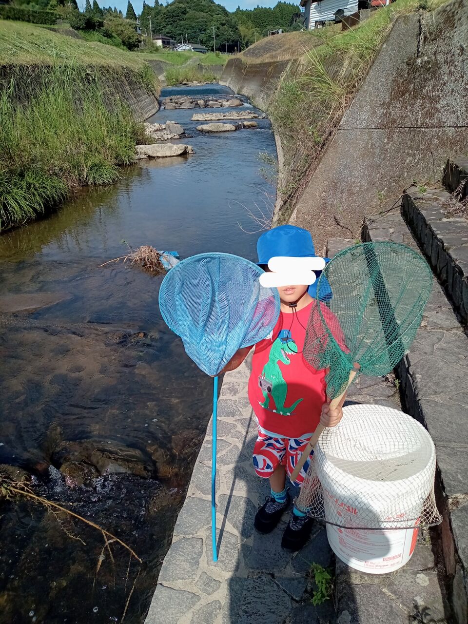 今回は、川にエビ捕りにやってきました。