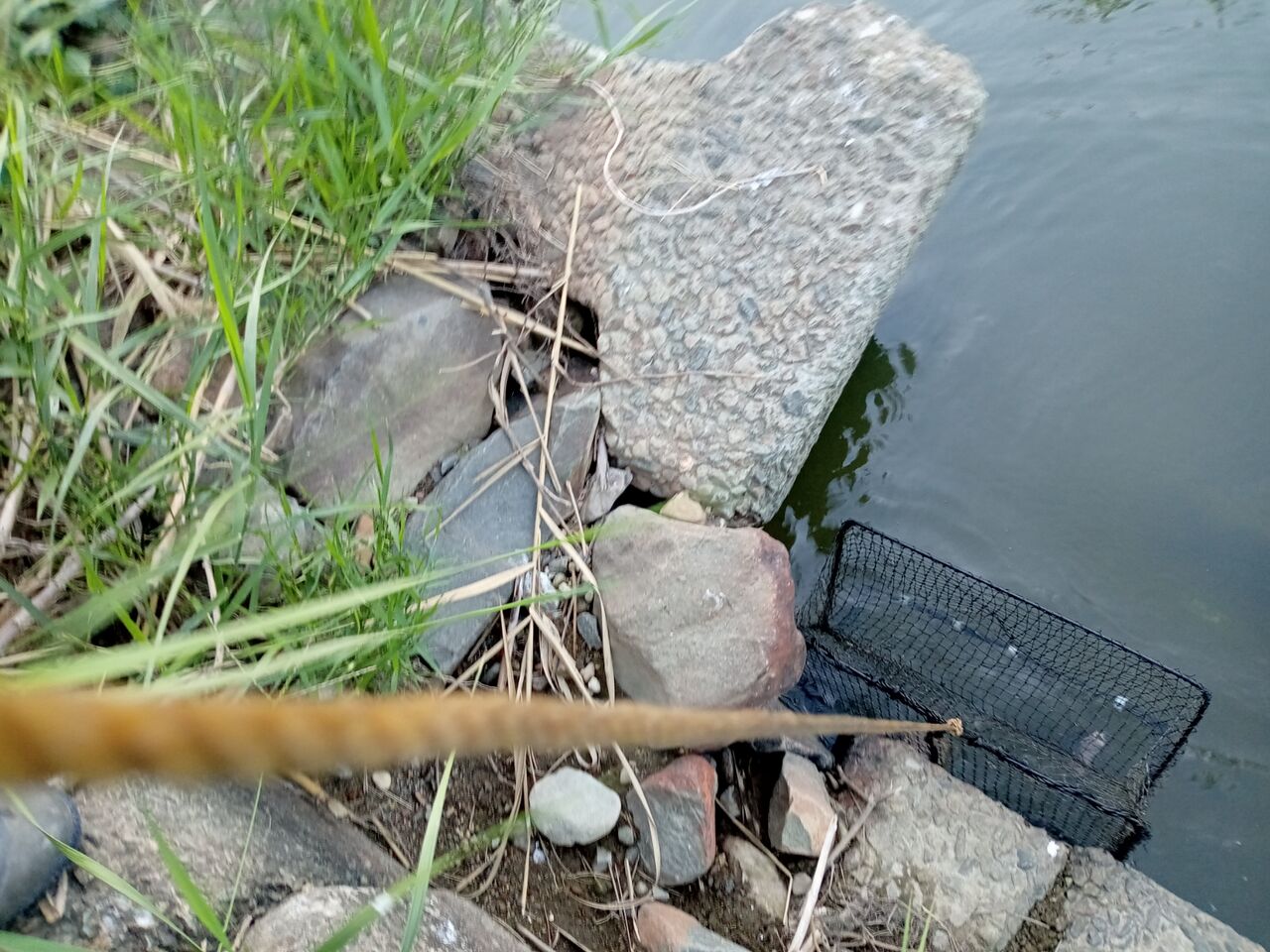 ガニカゴを川にinしましたが、2日経ちましたので、そろそろ、引き上げましょう。