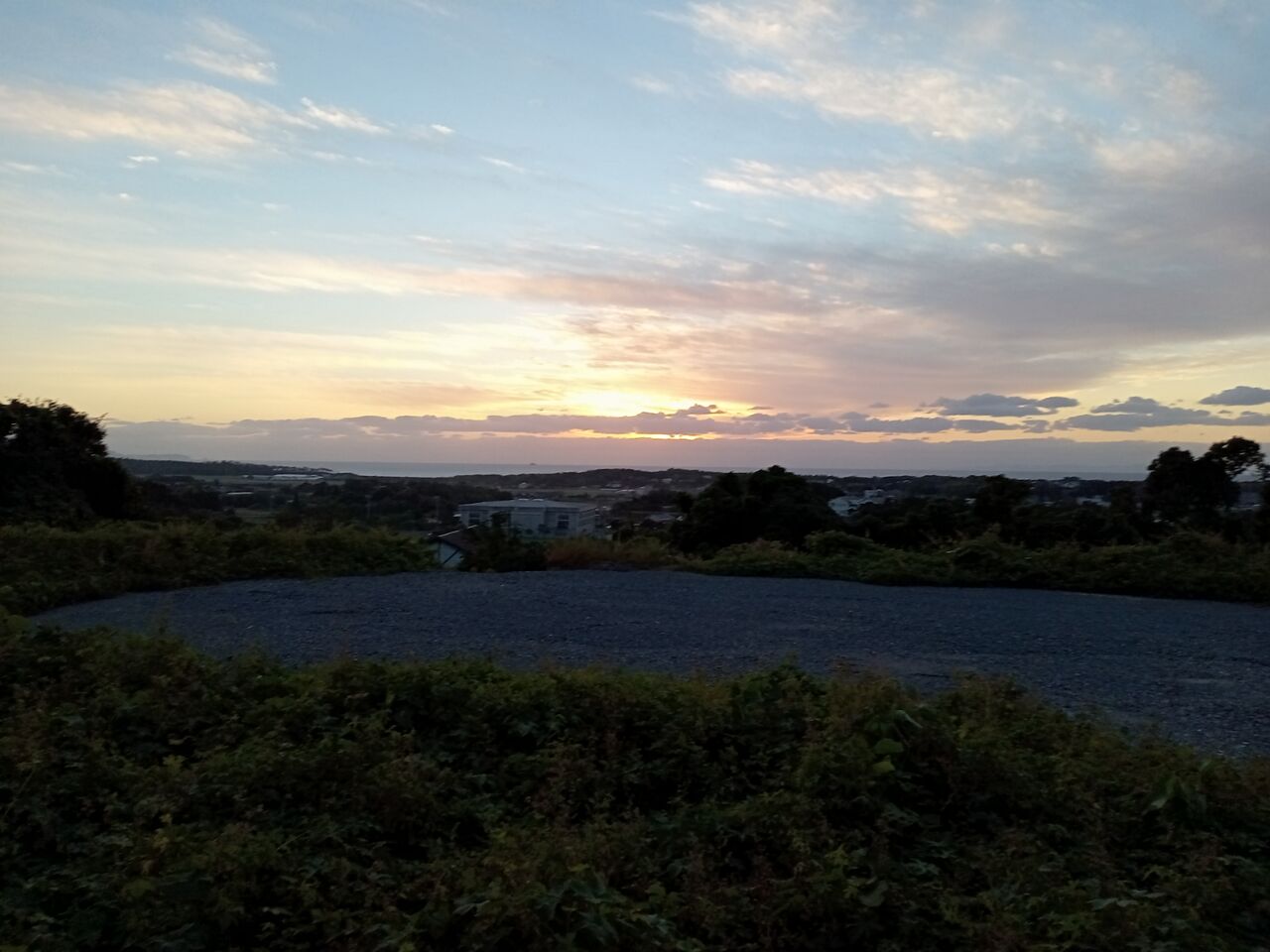 ひおきの住まい ひおきの暮らし ひおきと のロゴのような、夕陽が見える場所を新たに発見。 日置編 2021.11.12 せっぺとべお せっぺとべお です。そう、日新地域には、結構あるんですが、他の場所も、夕陽が見れると思い、改めて、日吉を散策。 やっぱり、ありますね。ビューポイント。もう少し拡大してみましょう。うーん、日吉の町並みが見えながらのオーシャンビュー。 イイねぇ。 左奥の海の中にあるのは、久多島です。ちなみに、手前にある、白い四角の建物は、日吉総合体育館です。アッ! 場所が特定されますね。少し曇っていたので、晴れた日に再挑戦してみます。