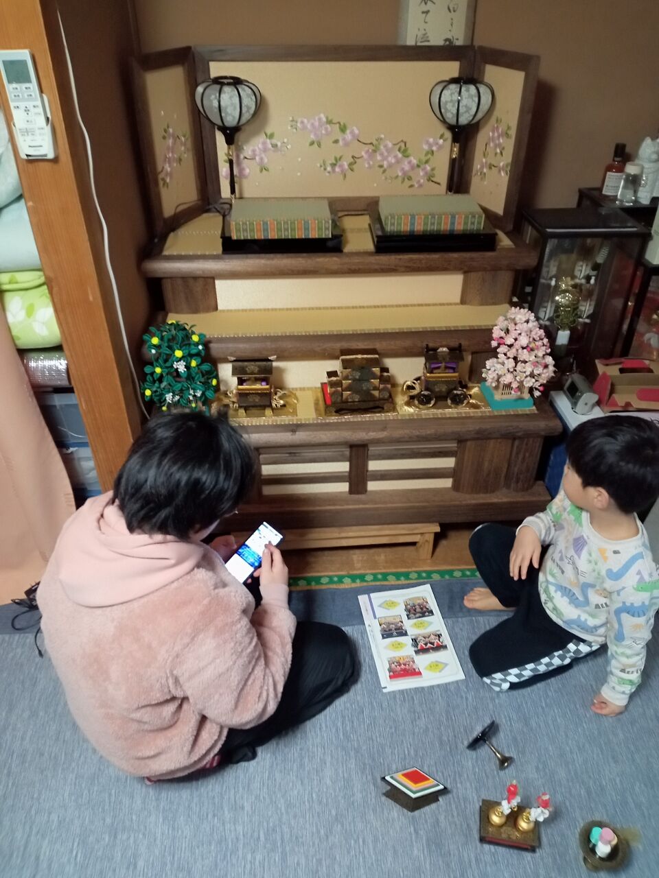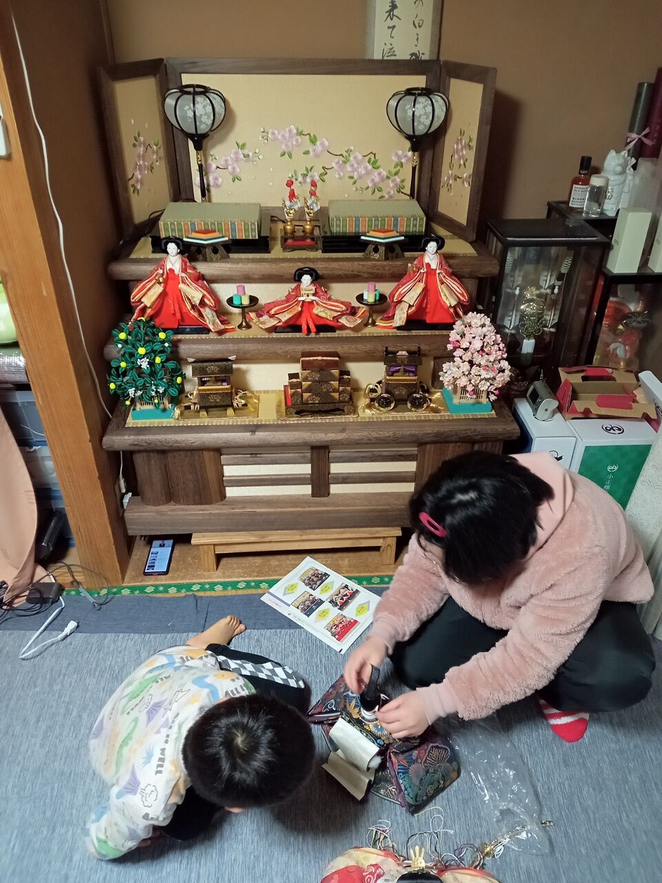 ひおきの暮らし ひおきの住まい 立春になりました。雛人形を飾りましょう。 2022.2.12 せっぺとべお せっぺとべお です。節分→立春となれば、雛人形を飾りましょう。子供も健やかな成長を祝うためですが、何歳位まで飾るのでしょうかね。まずは、床の間を片付けよう。生活感有り過ぎ〜。三段飾りです。毎年、橘と桜の配置で迷いますね。 取説と携帯で見ながら、配置。完成しました。健やかに育ちますように。