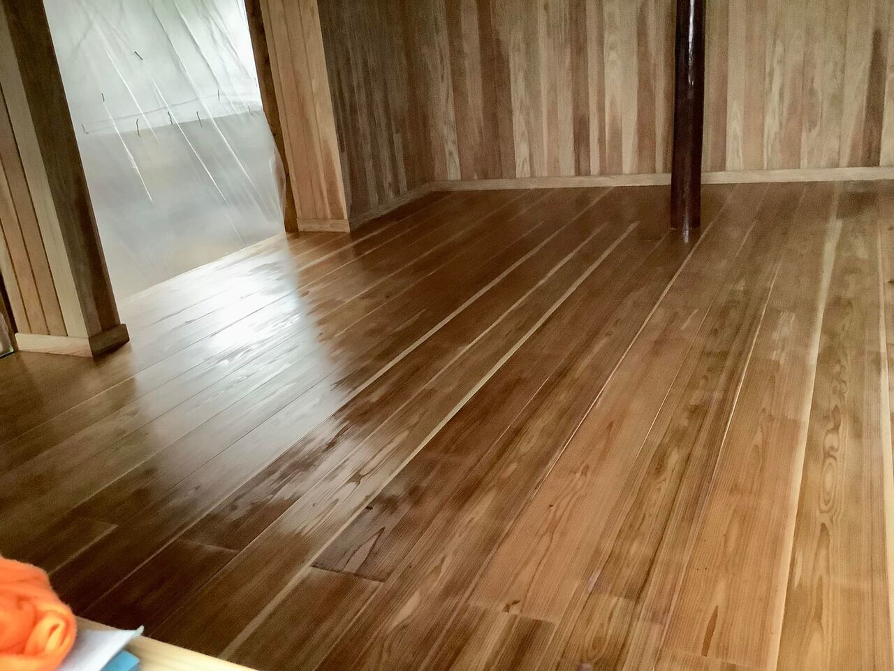アフター 綺麗な飴色の床になりました!素晴らしい!