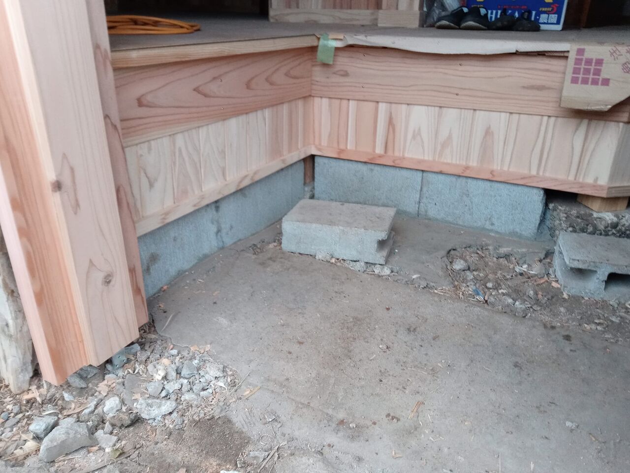 ⑪まずは床下をブロックで隠します。lこんな感じです。