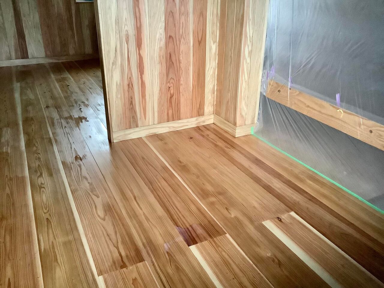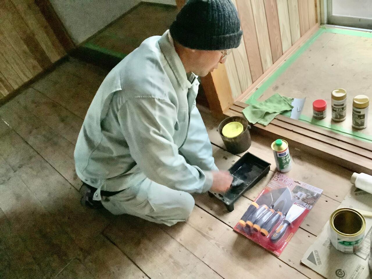 塗装は板間の床・壁・天井・窓枠です!