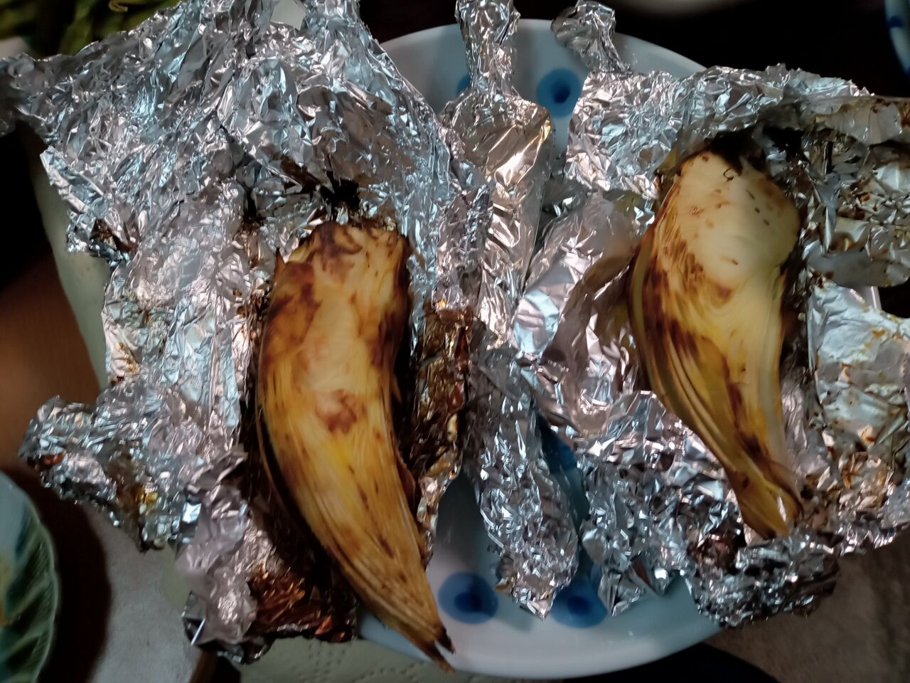 半分にカットしたら、アルミホイルでくるんで、グリルで焼きます。