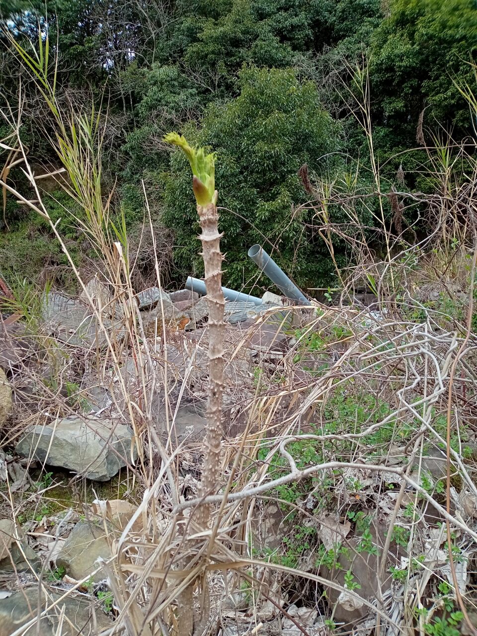 ひおきの食 ひおきの暮らし 日吉の自然を喰う 山編(春だね~。タラの芽が出てきました。) 2022.3.28 せっぺとべお せっぺとべお です。春の旬といえは、タケノコ、ツワ、そうそう、もう一つ忘れてました。タラの芽、タラの芽!! 探しに行こう!まだ、出てないですね。おっ!! 見〜つけた。いいサイズですね。ただ、幹にピがあるから痛いので、気をつけないと。そうそう、「トゲ」のことを「ピ」といいます。ピが刺さらないように、採りました。では、食べましょう。当然、天ぷらです。サックサクで少し苦みがたまらない。雲雀も鳴き始めました。早朝、撮ったけど、遠いし、小さいし、写らないのよ。