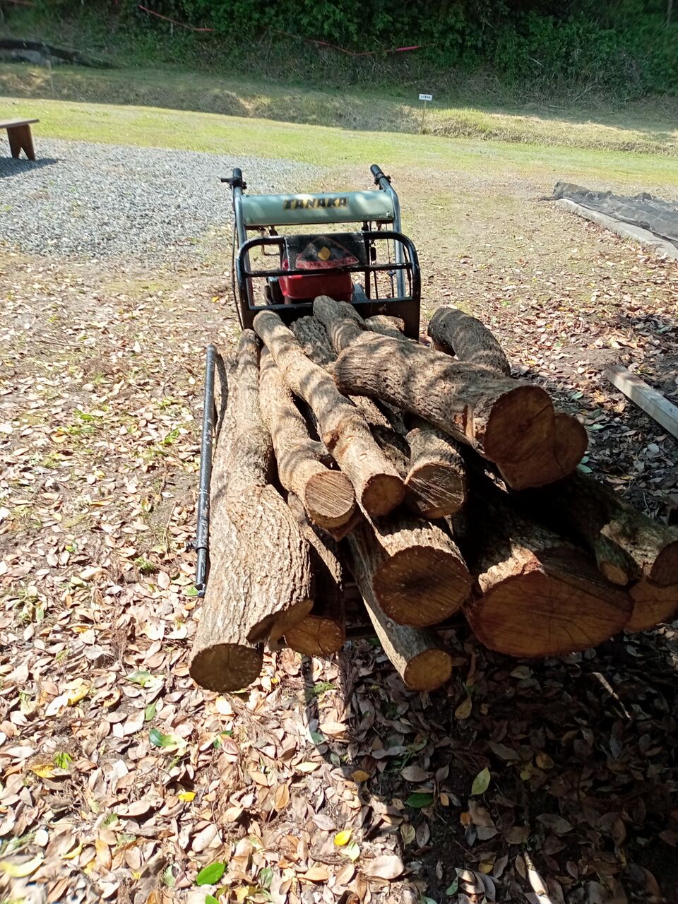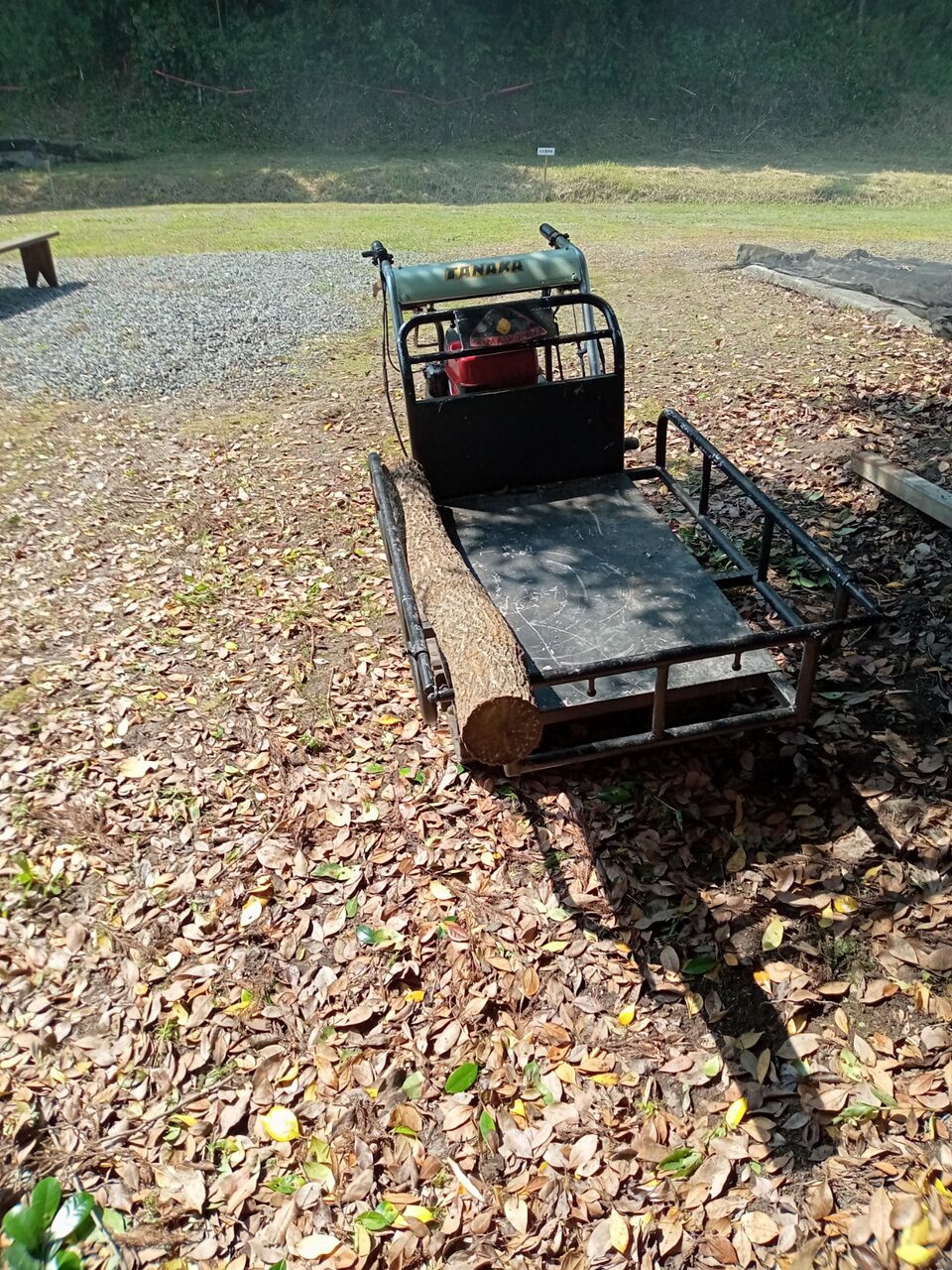 仮伏せの場所から、立てる場所まで、傾斜もあり、少し距離があるので、運搬機で運びま~す。