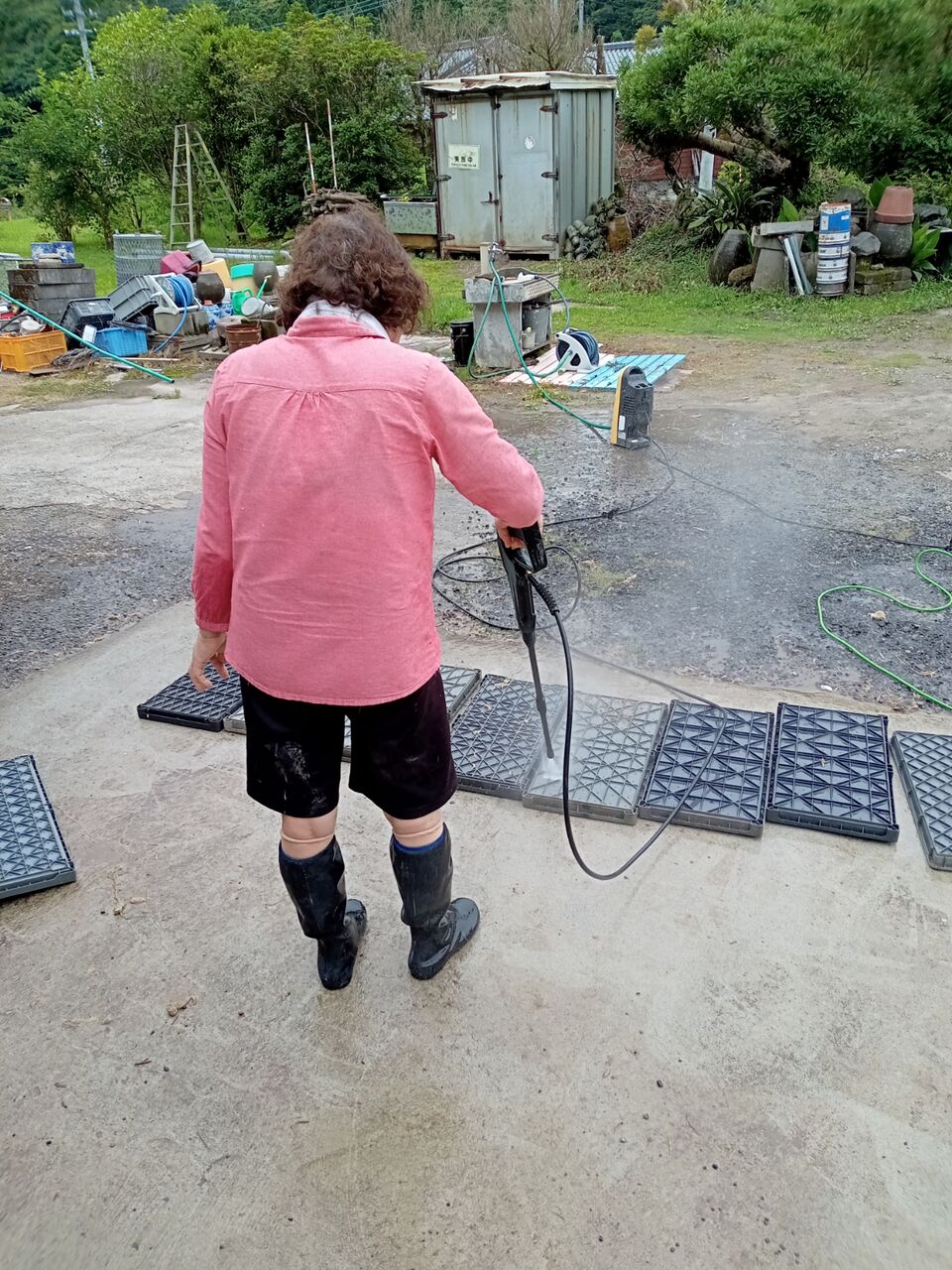 終わったら、苗箱を高圧洗浄機で洗って、来年まで直しま〜す。