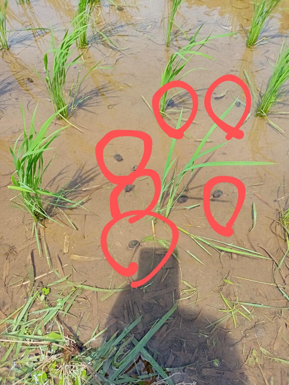 スクミリンゴガイ 通称 ジャンボタニシです。