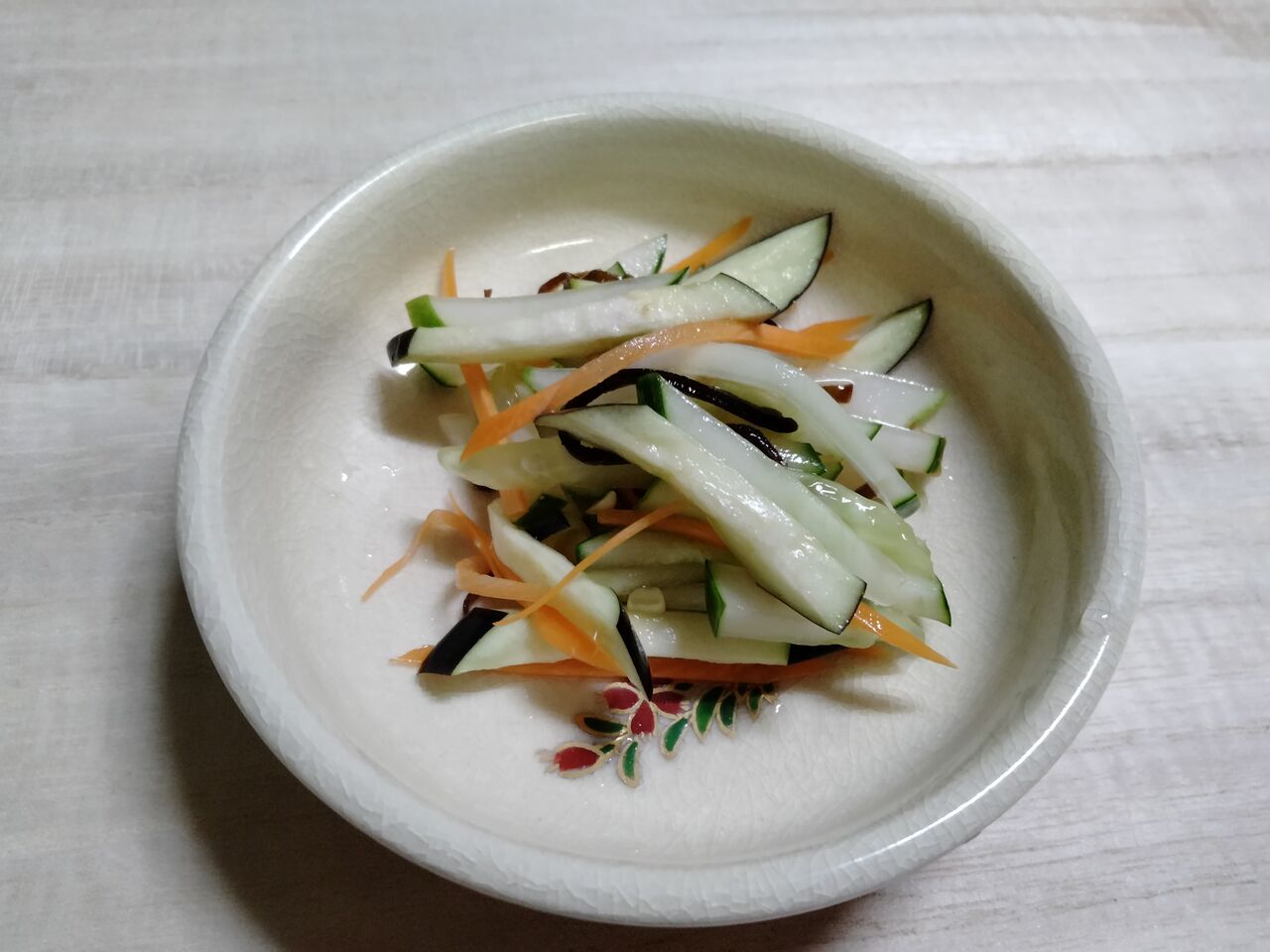 瓶に残った梅酢は、さっそく夏野菜の酢の物に使ってみました。