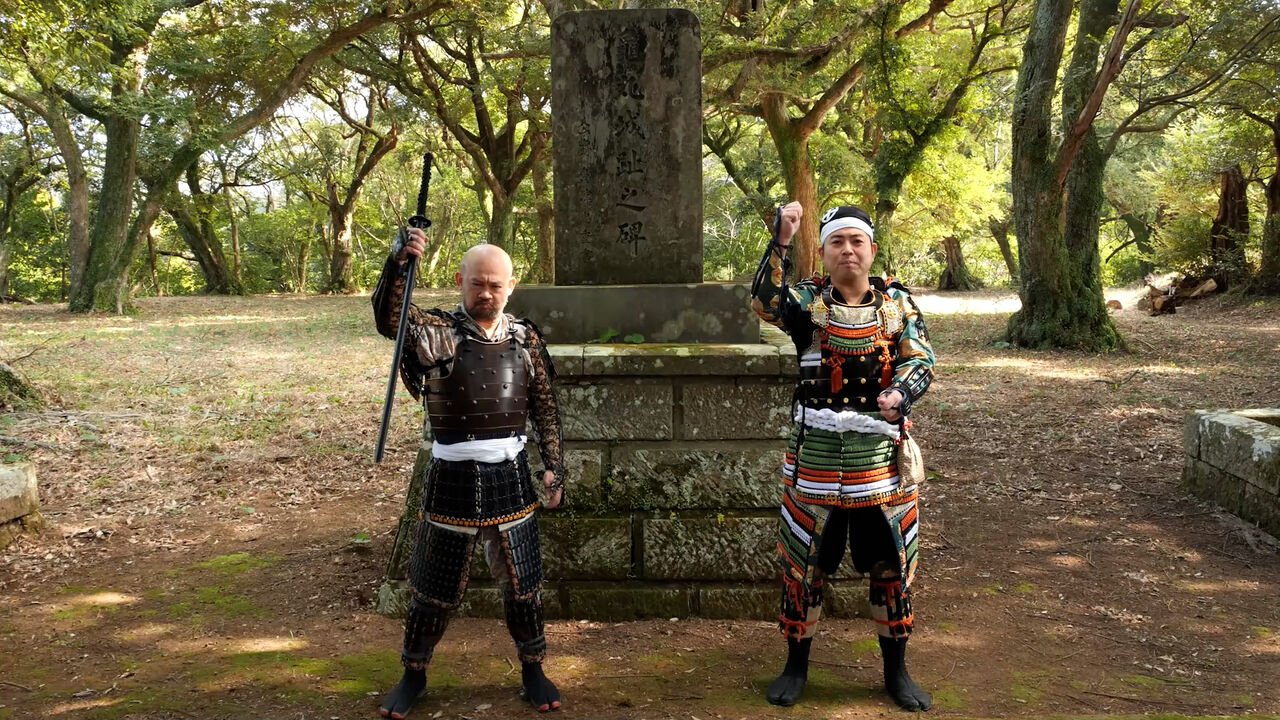 島津四兄弟の誕生石。ひおきPR武将隊とユニゾンしてますね。
