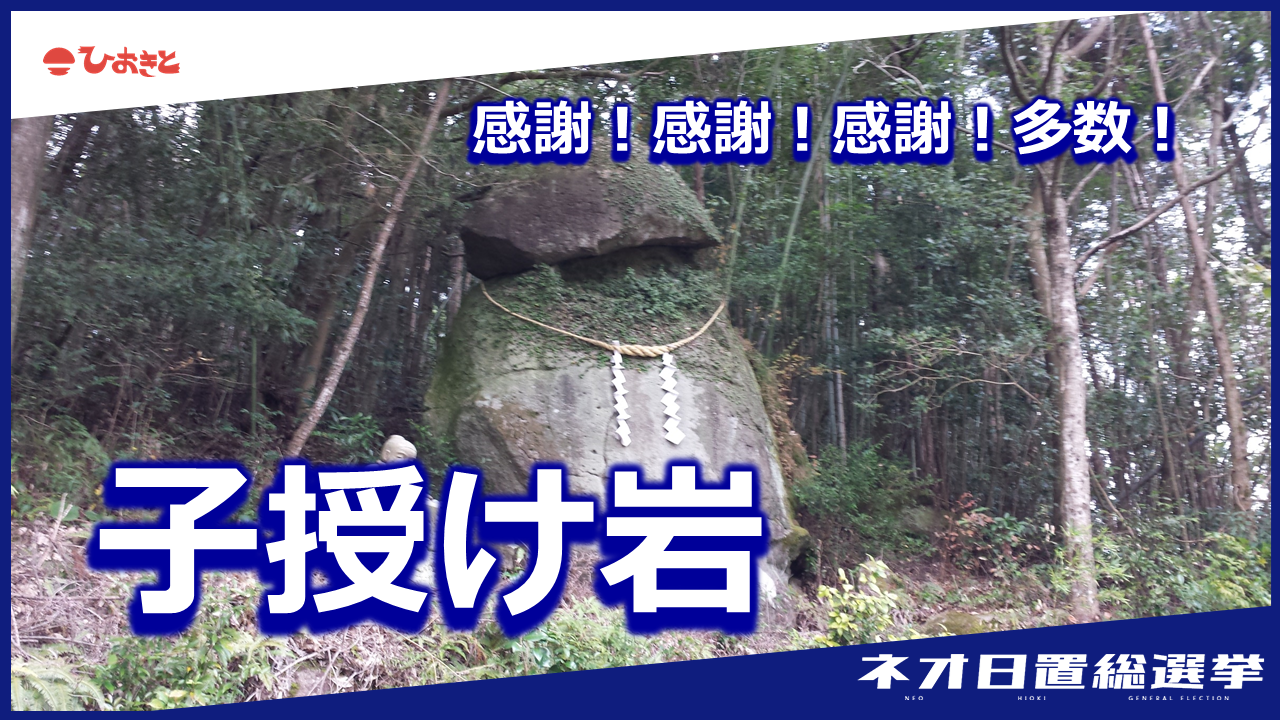 ひおきのイベント 子授け岩「ネオ日置総選挙」名所~感謝!感謝!感謝!多数!~ 2022.8.7 全力坊主 感謝・感謝・感謝多数!!■マニフェストしっかり祈願できるような仕組みの構築と楽しめるコンテンツ設置を目指します。もの凄くおっきな岩!!!このような言い伝えから、子宝を望む夫婦に人気のスポットとなっているんですね~。子宝に恵まれたことに対するお礼が石に書かれていたり、願い事が書かれていたり。この大きな岩。ぜひ一度ご覧ください。 \ 投票は8/31(水)まで! / あなたの投票が、日置の未来を決める! ↓↓↓ 投票はこちらから ↓↓↓