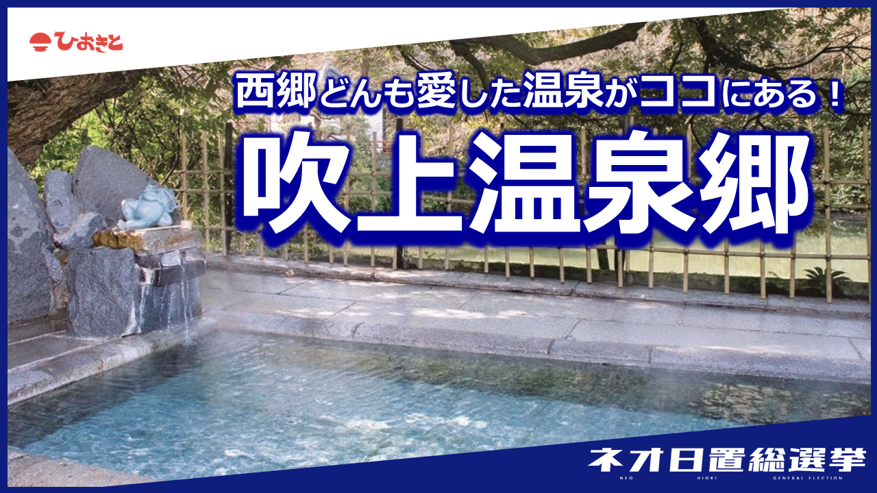 ひおきのイベント ひおきの暮らし 吹上温泉郷「ネオ日置総選挙」~西郷どんも愛した温泉がココにある!~ 2022.8.8 とまらぬ天パ 日置市が誇る名湯がここに!■マニフェスト各温泉施設を紹介しつつ、温泉にまつわる楽しめるコンテンツ設置を目指します!あの西郷さんも湯治に訪れたという「吹上温泉郷✨」全国のみなさんにも絶対に体験してほしい場所です!みなさんの熱き一票を「吹上温泉郷」にぜひ! \ 投票は8/31(水)まで! / あなたの投票が、日置の未来を決める! ↓↓↓ 投票はこちらから ↓↓↓