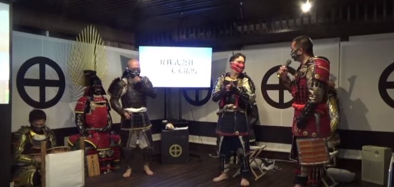 当日の生配信では、「戦国島津ゆかりのまち」としての「歴史的プライド」と、新しいことにチャレンジする「最新のテクノロジー(メタバース)」とのミスマッチを最大限表に出した演出にしようと、戦国島津体験館「よしとし軍議場」で参加者全員甲冑姿でスタート!!!