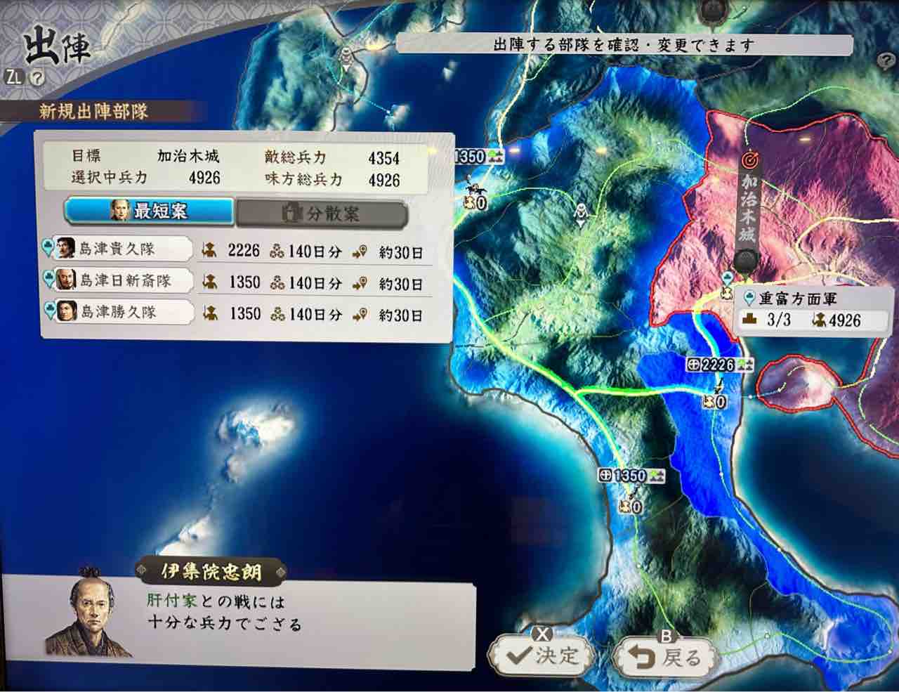 加治木城を治めているのは肝付家。大隈方面の高山城も治めており、そちらの軍勢も加勢に来る事は必至!しかしこのままでは何も出来ないまま九州平定は元より天下統一など夢のまた夢に。意を決して加治木城を攻めることにしました。