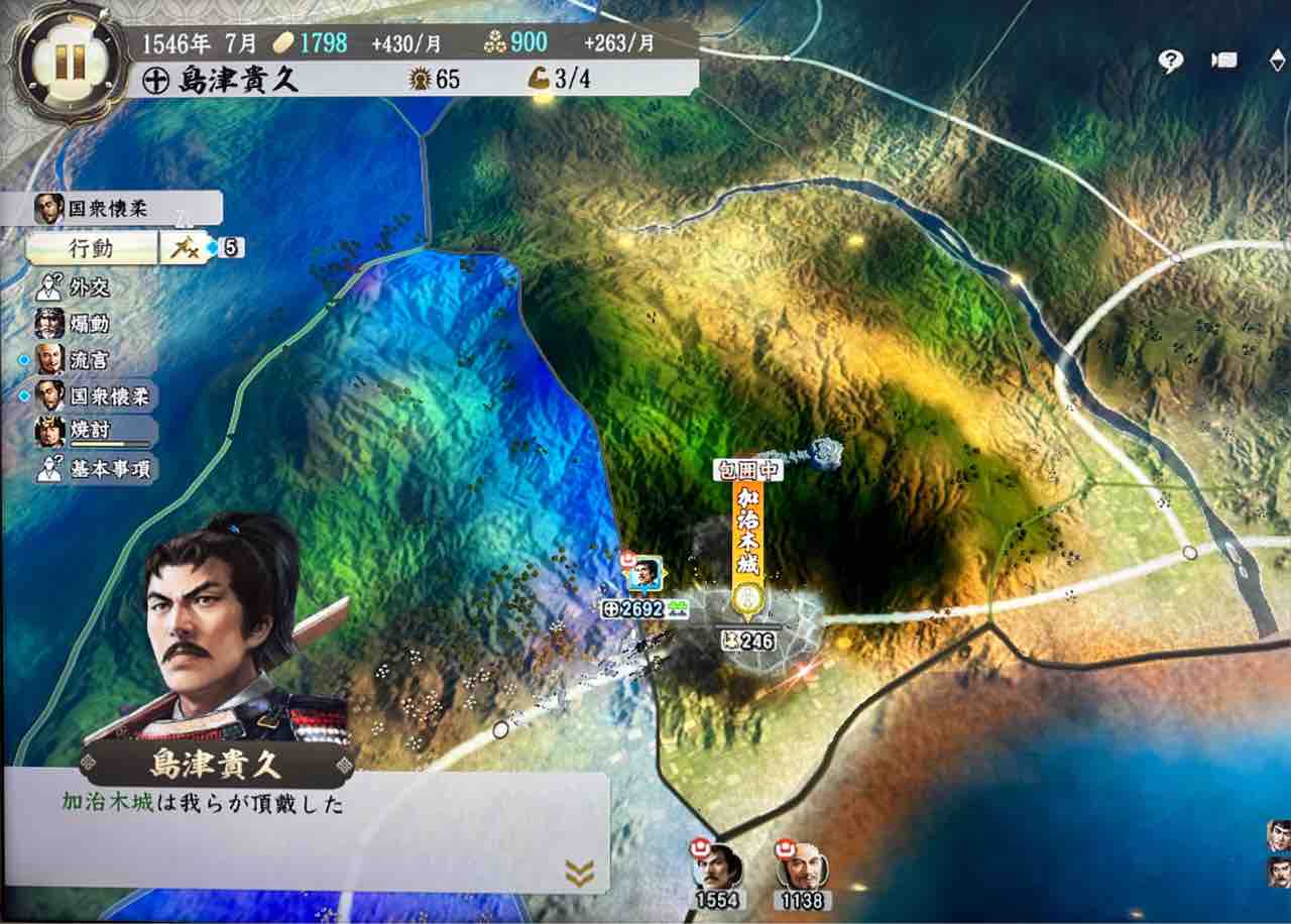 初めての合戦が始まりました。相手はかの有名な肝付兼続。肝付家の高山城からの援軍が間に合わなかった事もあり、兵数としては2倍近くで挑む事が出来ました。