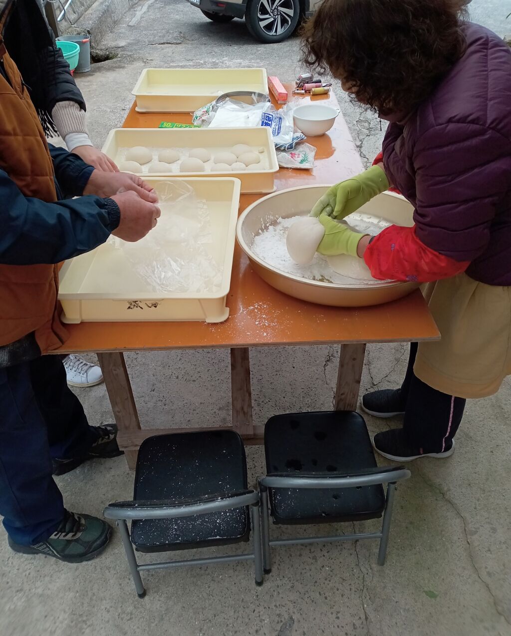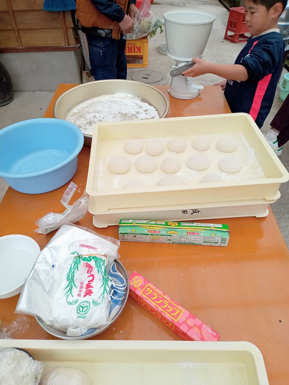 飾り用に、丸餅を作ります、熱いうちにちぎらないとできませんから、時間との勝負です。