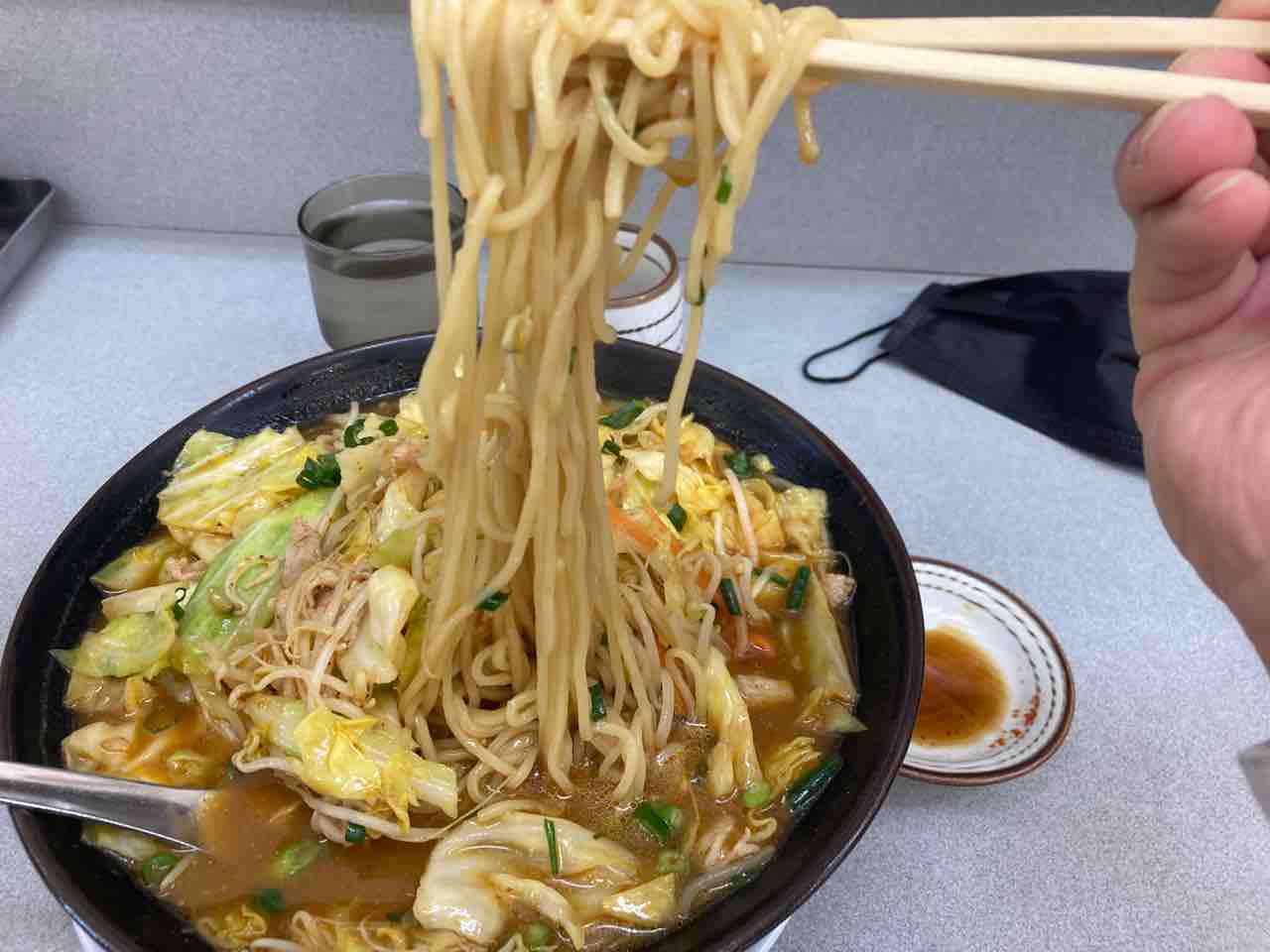 野菜の下に潜む大量の麺をほぐすのが、なかなかに大変!