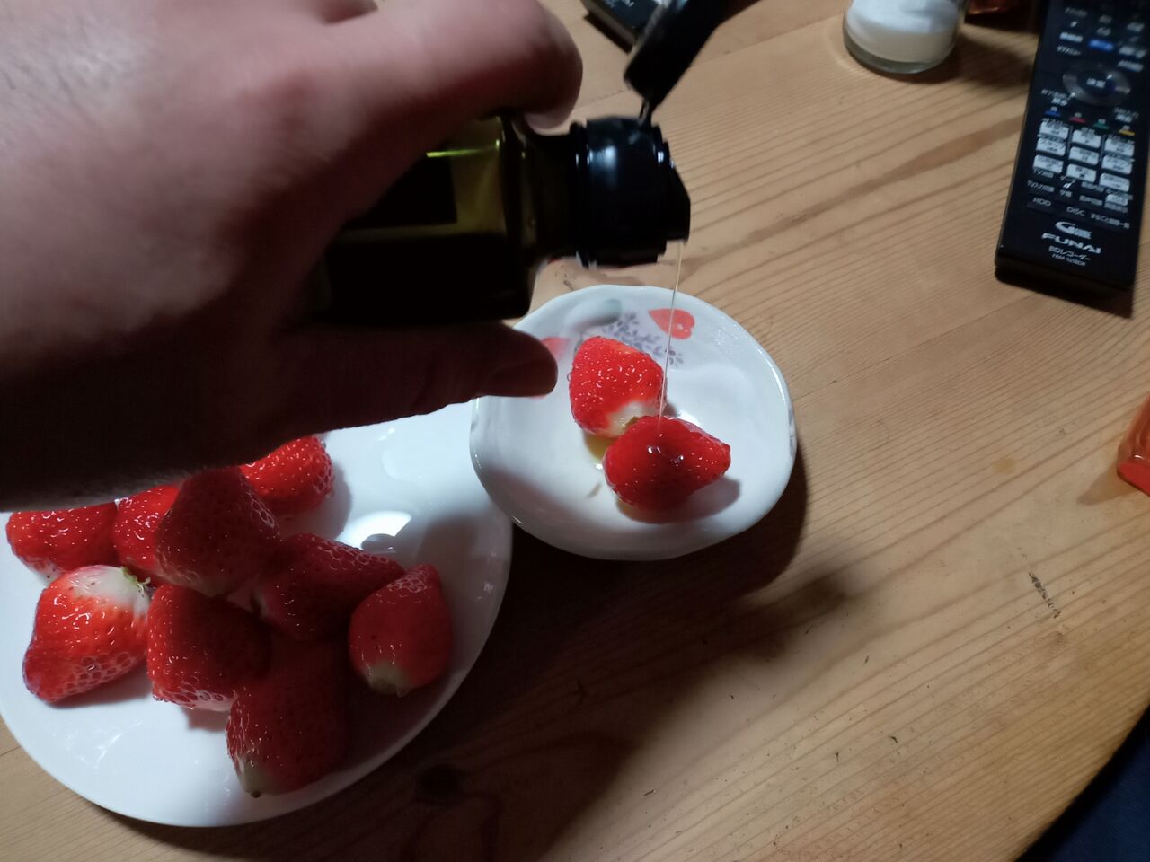と、言ってはみたものの、練乳のように、全イチゴにかける勇気はなく。