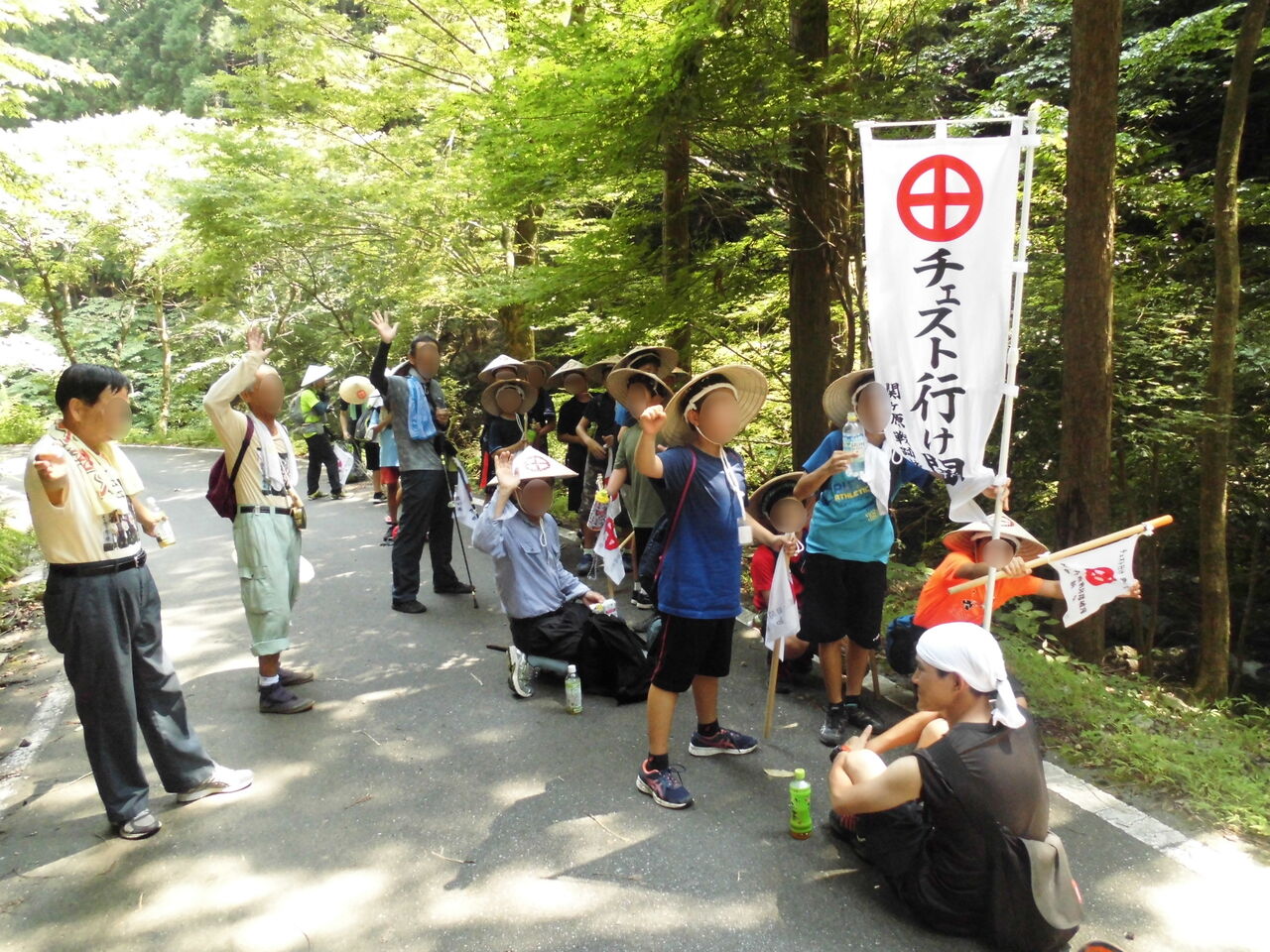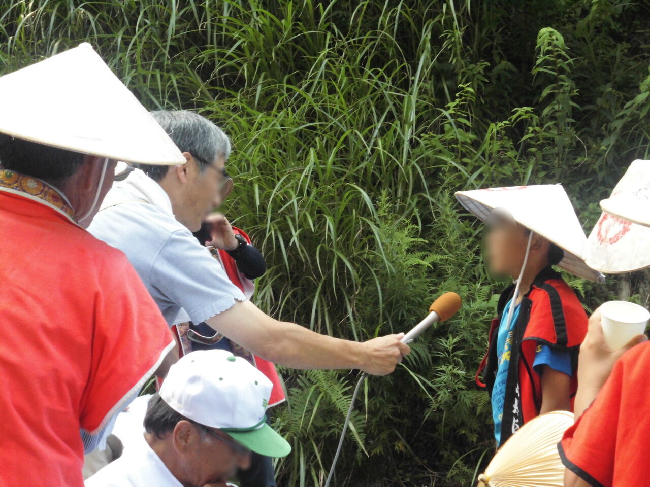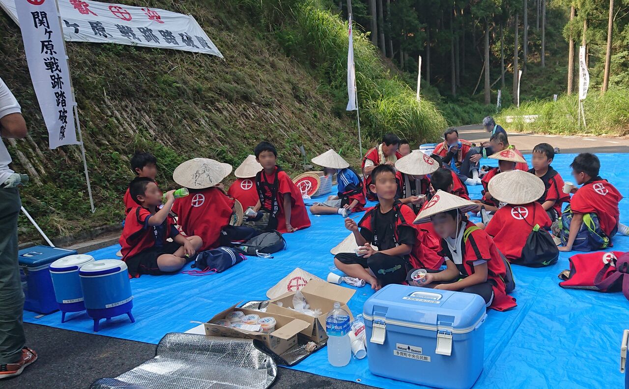 本日の目的地である多賀町の方々が峠の頂上付近で冷たい飲み物やアイスクリームを用意して待っていてくれます。町長さんや教育長先生など多くの方々が出迎えてくれます。