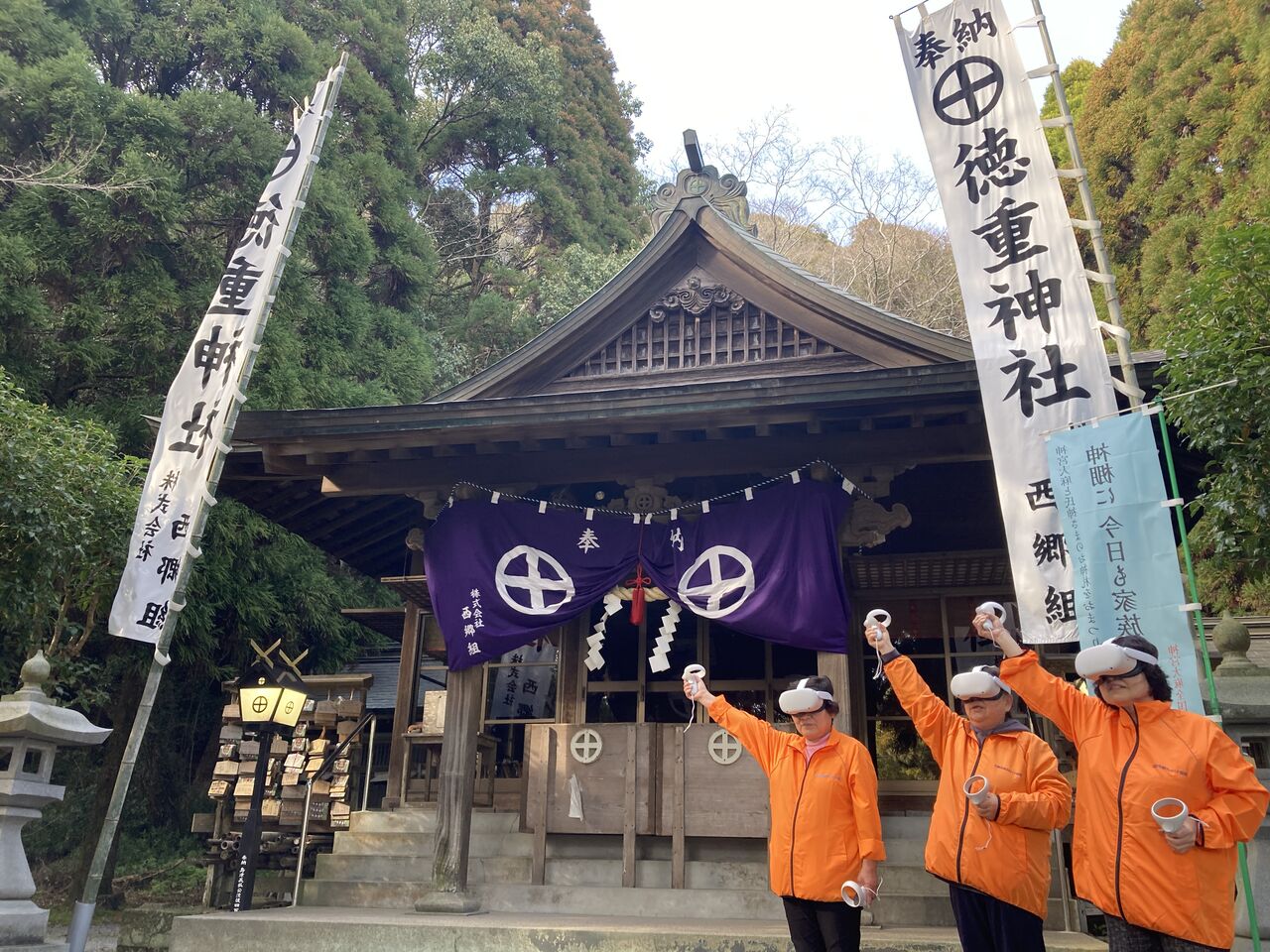 島津義弘公が祀られている徳重神社の紹介をする様子(イメトレ)