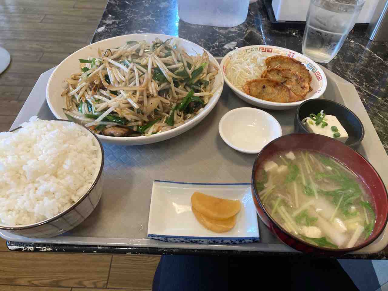 これが地域の漢(ヲトコ)を魅了して止まない「蘭丹」のレバニラ定食。