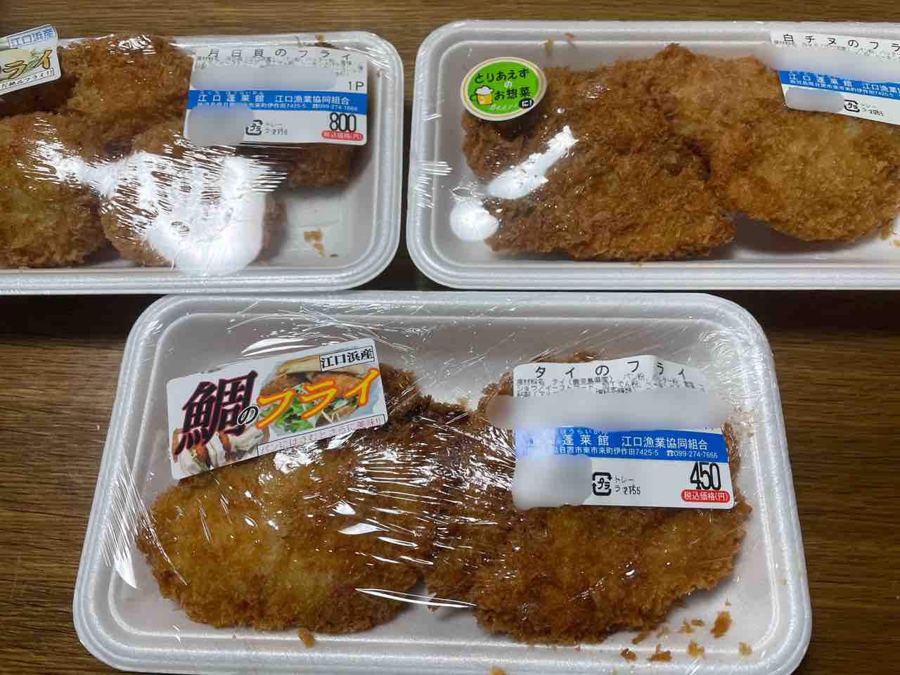 月日貝、白チヌ、タイのフライ。まず東京では見ない組み合わせ。帰宅後に撮影。すべて美味しくいただいた。