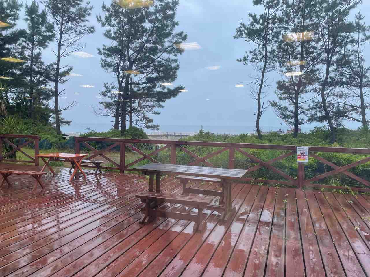 レストランからは東シナ海を一望できる(この日はたまたま島津雨。常に雨が降っている訳ではない)