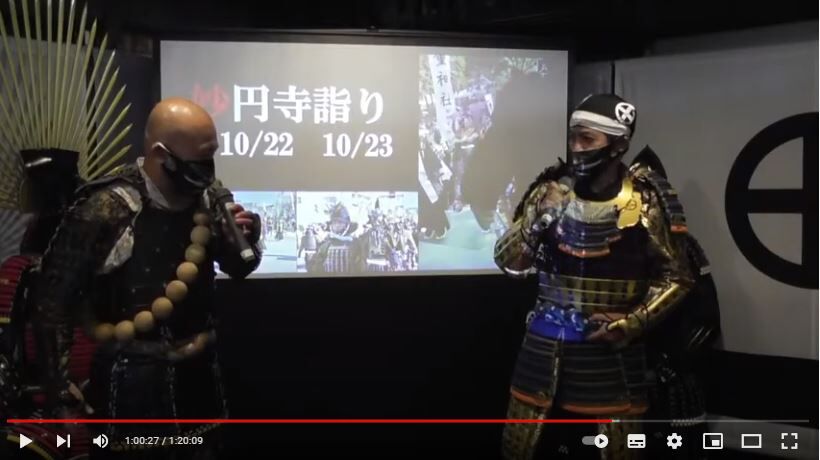 毎回甲冑に身を固め、甲冑着付け体験施設「よしとし軍議場」でお送りしているこの企画。