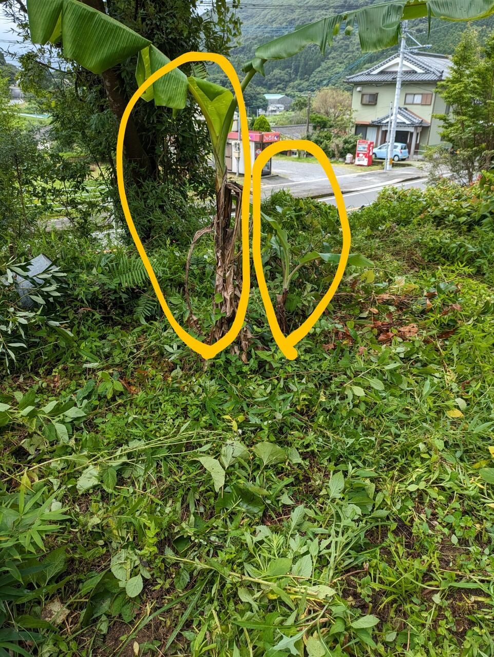 ひおきの食 ひおきの暮らし 南国のクダモノは、育つはず、越冬していました。そんなバナナ! 2023.7.10 せっぺとべお せっぺとべお です。日置市も暖かい場所ですからね。南国のクダモノが、生えているわけですよ。そして、なっているんですよ。そう、バナナです。これは、近所の家の庭に生えているものですが、大きくなりすぎたので、切って、切り株を大きくなるのを期待して植えました。それが、一年前、久しぶりに見に行くと…育っているではないですか!!!でも、草山だね。 どら、刈りますか。3株植えたので、2株育っていました。よく、越冬しました。今年は、自前のバナナが食べれますね。Twitterアカウントフォローいただけると励みになります!よろしくお願いいたします。