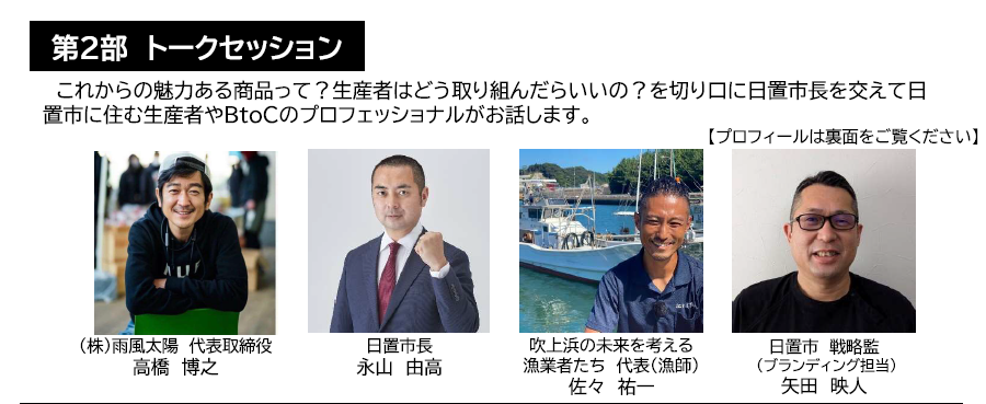 なんと!永山市長に佐々さん、日置市のブランディング担当矢田さんも登壇するトークセッション。