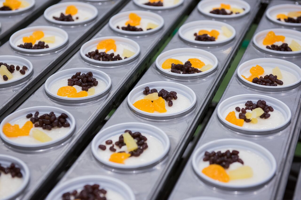 フルーツは柔らかく、形が決まっていないので、トッピングの作業は機械化が難しいのだそうです。