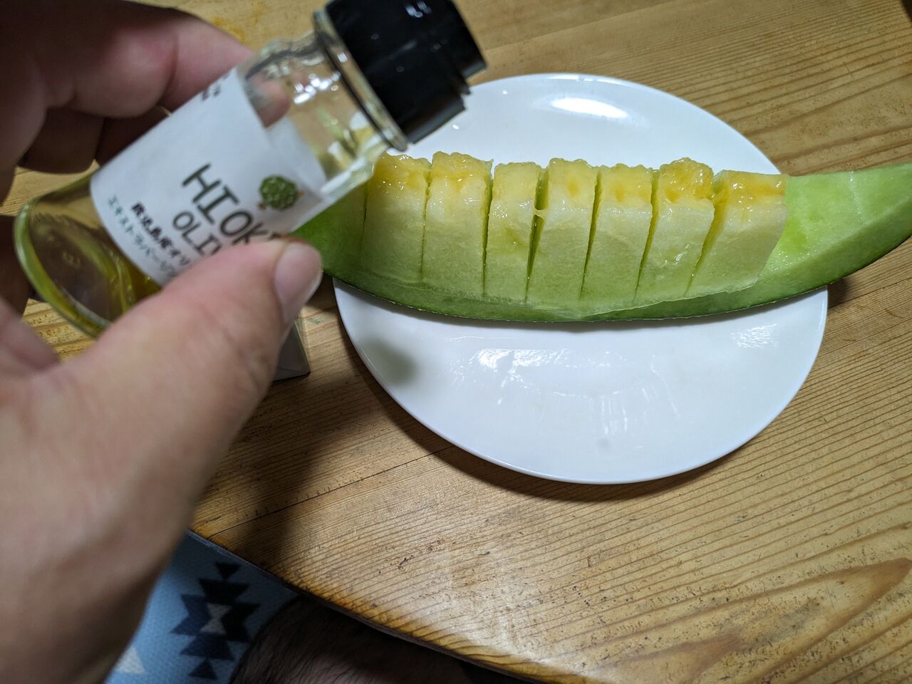 つけてないほうを食べると、メロン本来の味で美味しい。