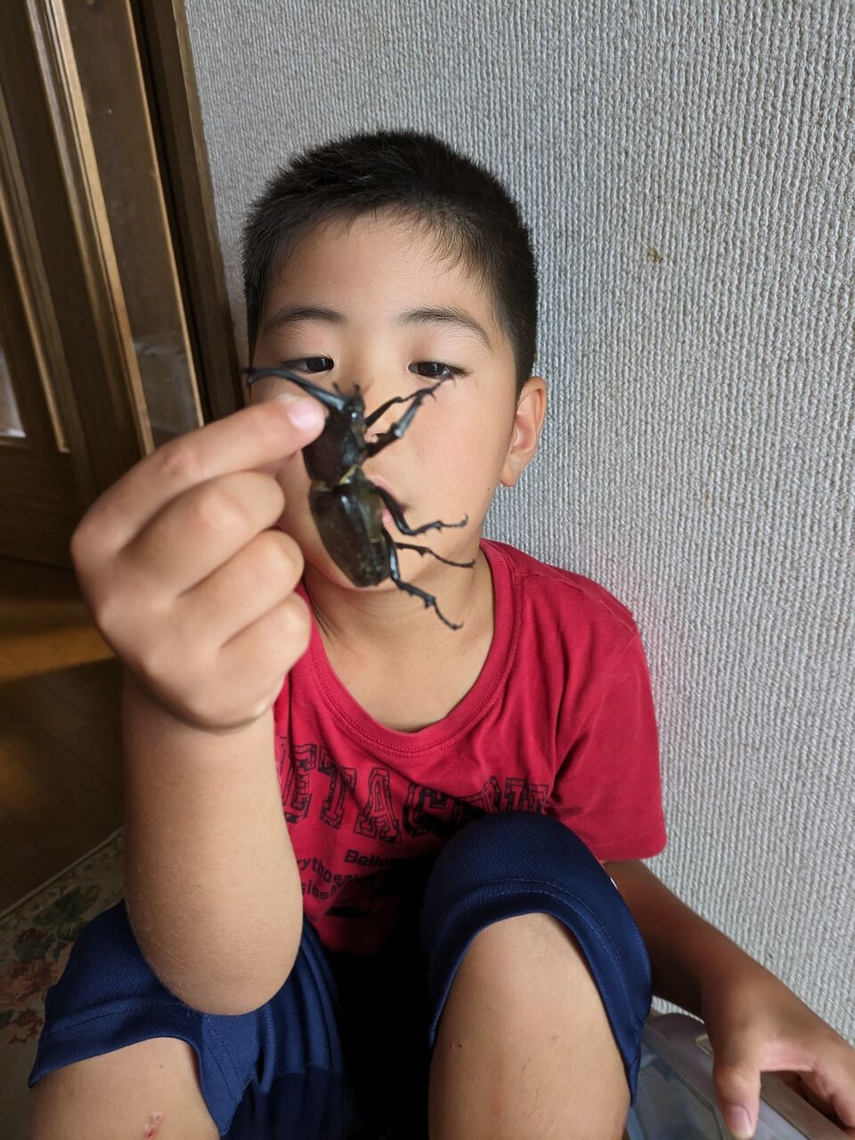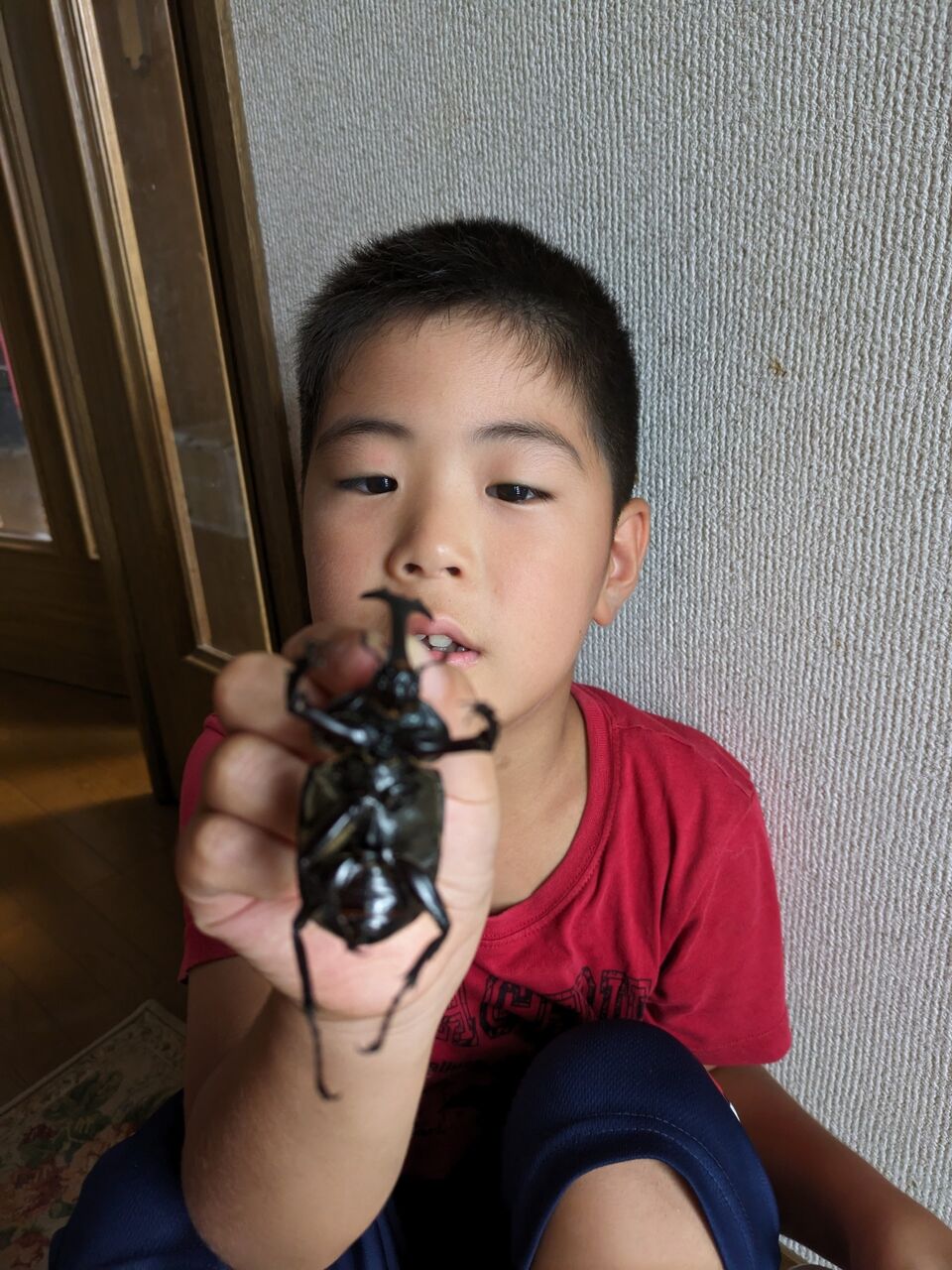 1番、角が長いカブトムシで〜す。立派ですね。