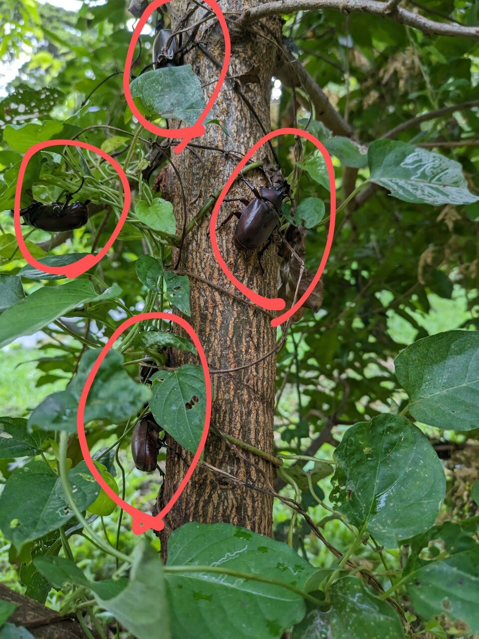 カブトムシの群れですね。ここまで多いと、選りすぐりを取って帰る事になりました。