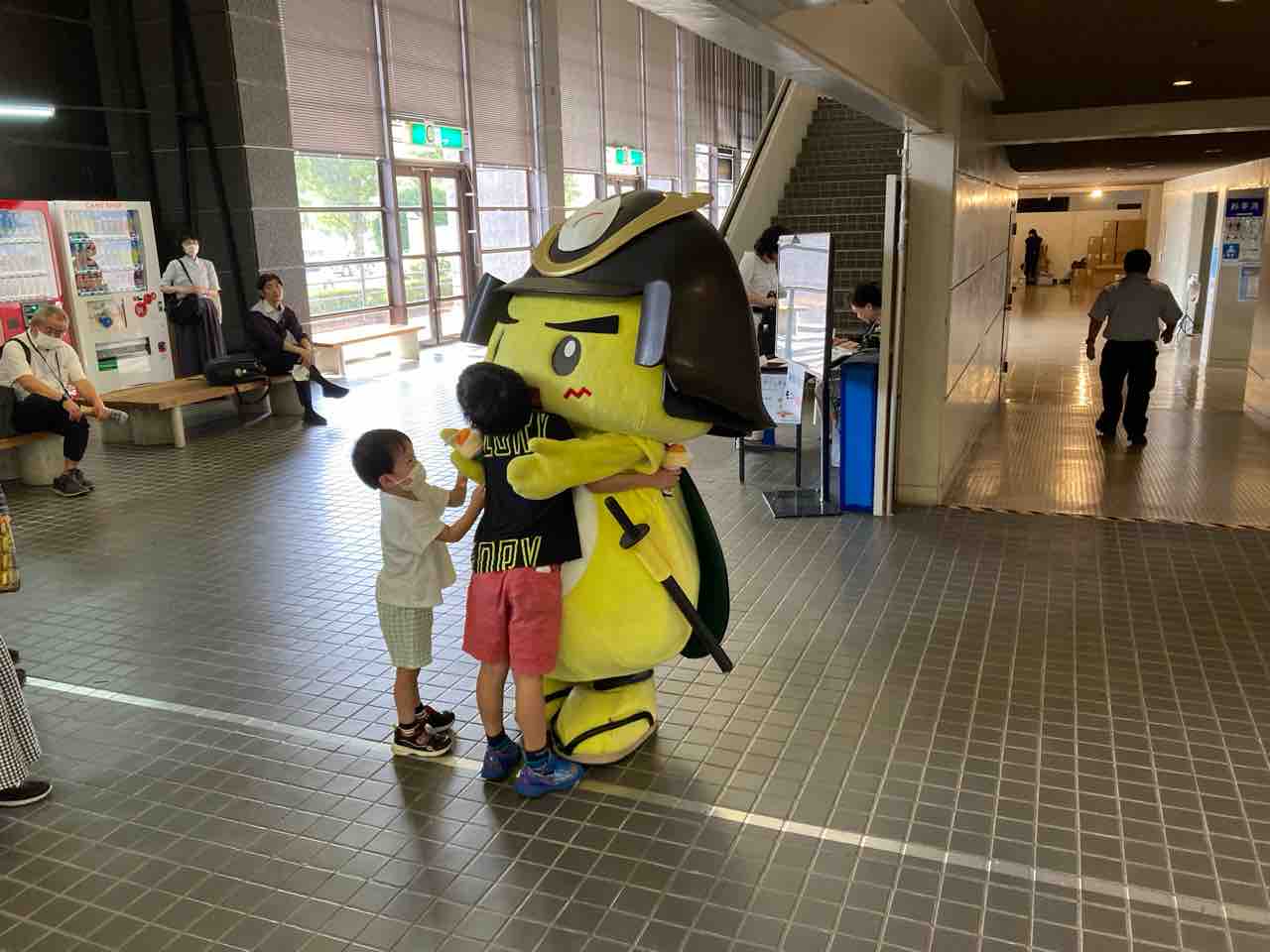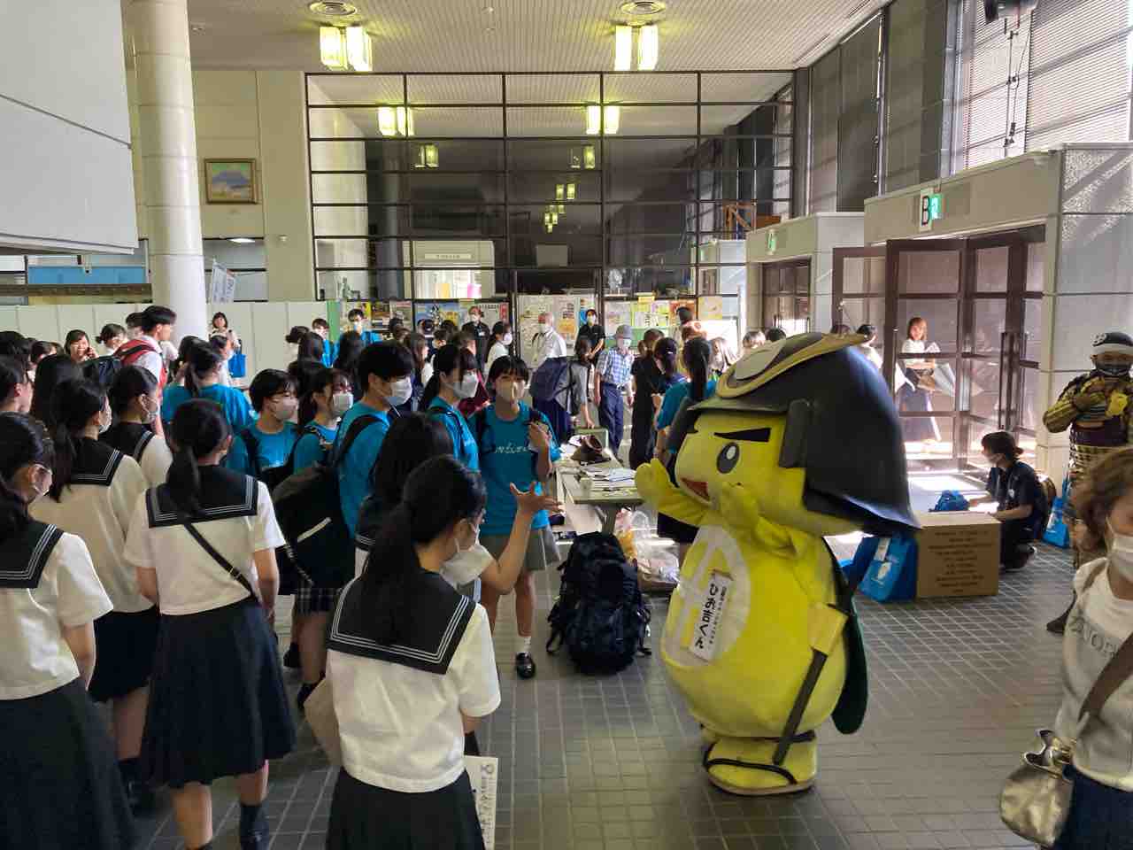 ↑かごしま総文祭で高校生と戯れるひお吉くん