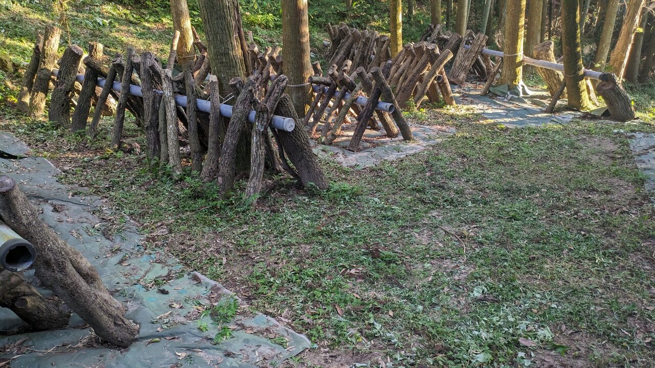 原木を立て掛けて。