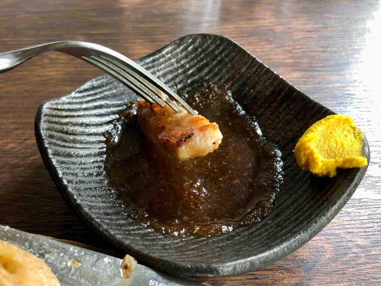 娘「ぷにぷにしてる!ステーキって噛みきれないことが多いんだけど、これはとても柔らかい。ソースも美味しいよ。私はマスタードはつけないけどね。」