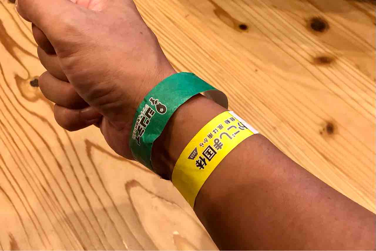 この腕に巻かれたリストバンドを見てほしい。1つは会場敷地に入るためのもの。
