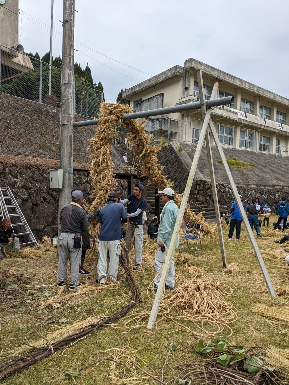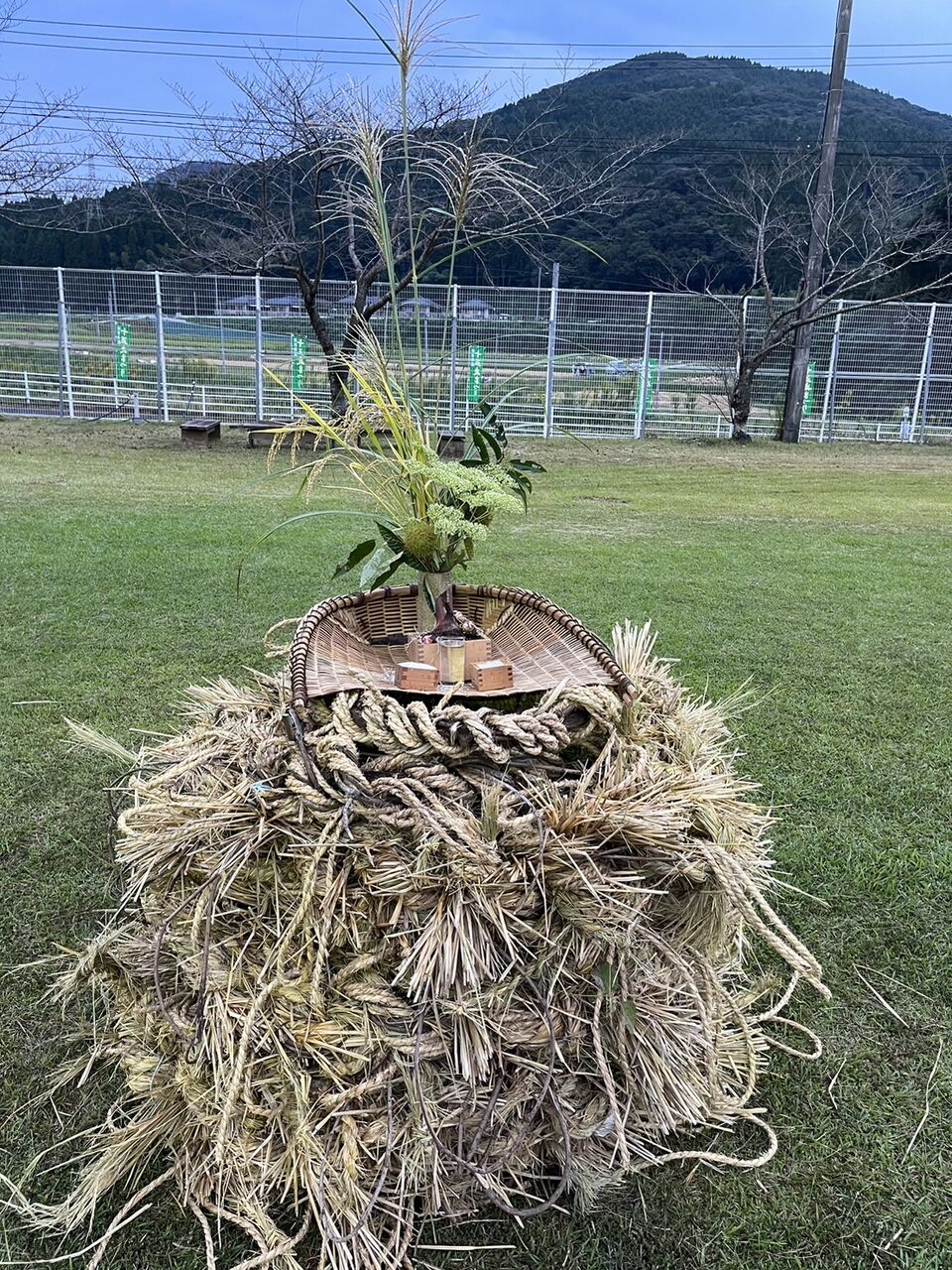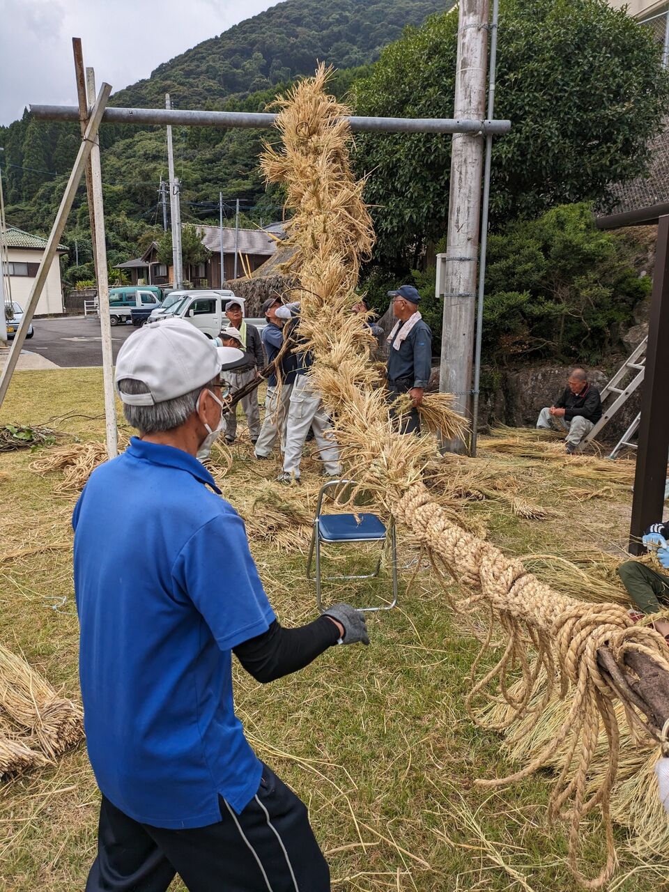 祭りで綱引きをするまでは、丸めて、十五夜飾りをしています。