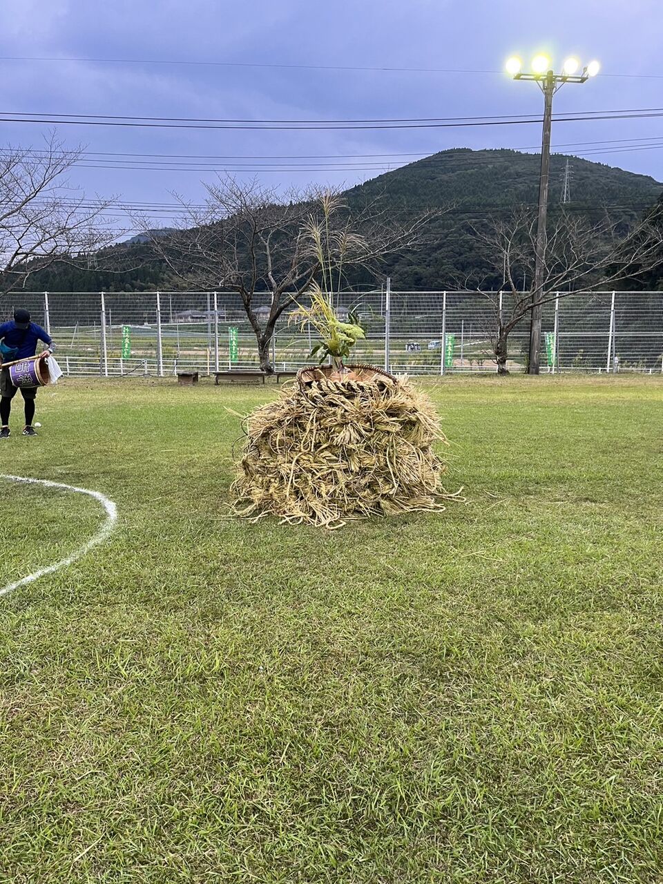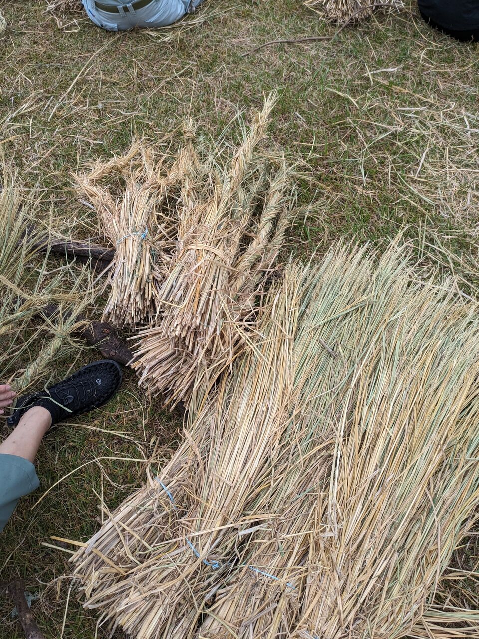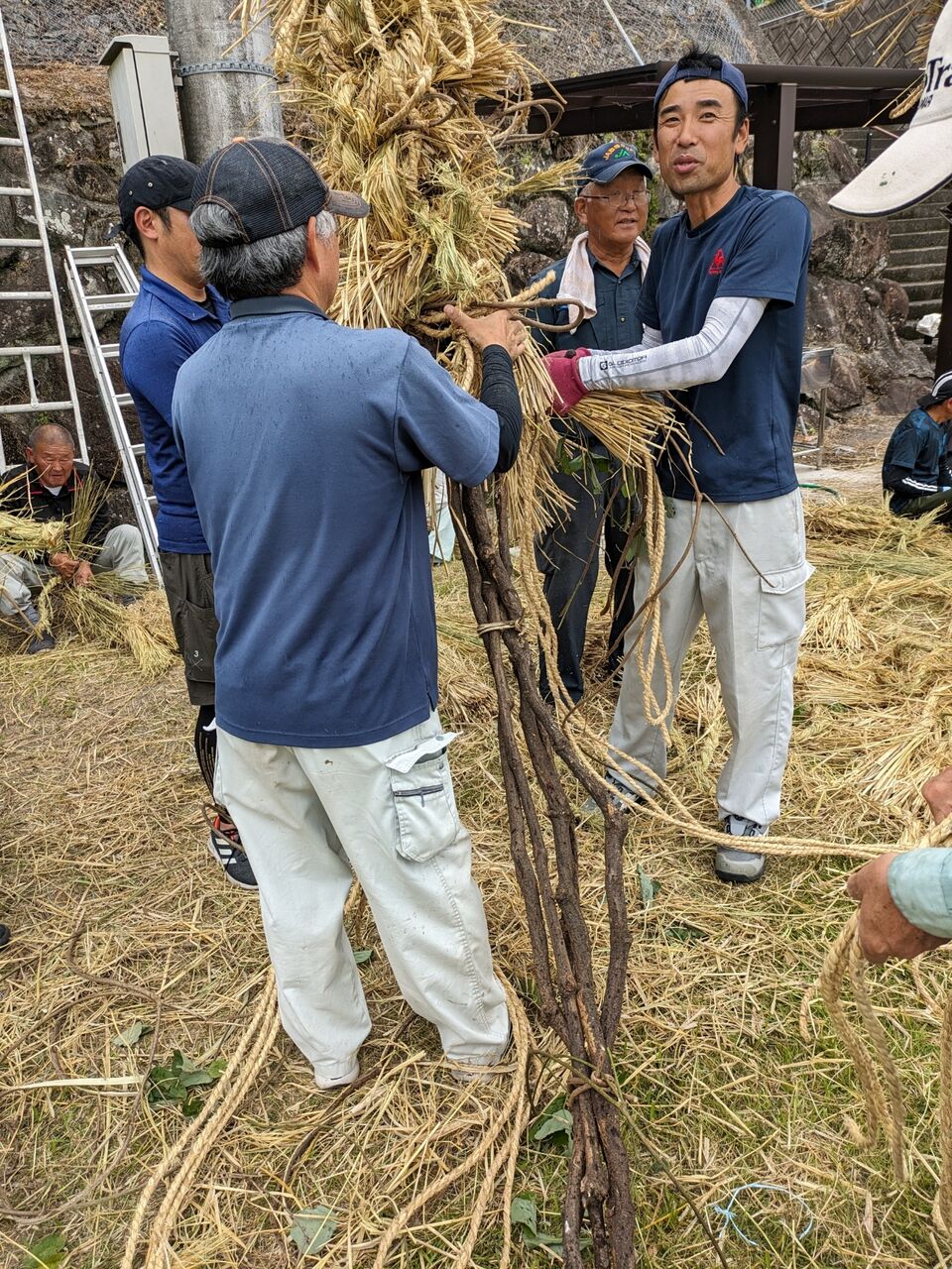 ワラをその周りにまきつけていきます。