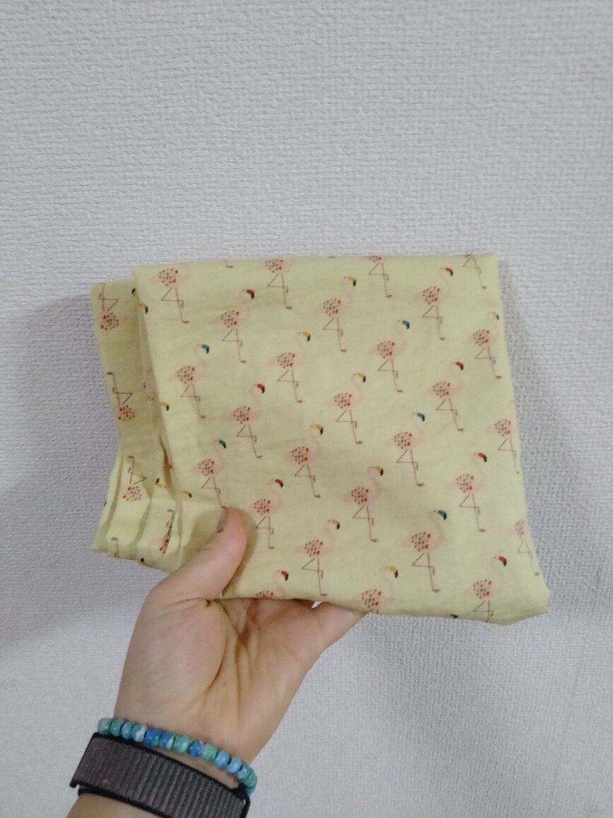 染める前の布の写真を撮り忘れましたが、白地にフラミンゴ柄の生地です