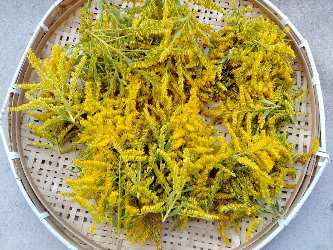 近所の散歩がてら、セイタカアワダチソウの花を収穫してきました。