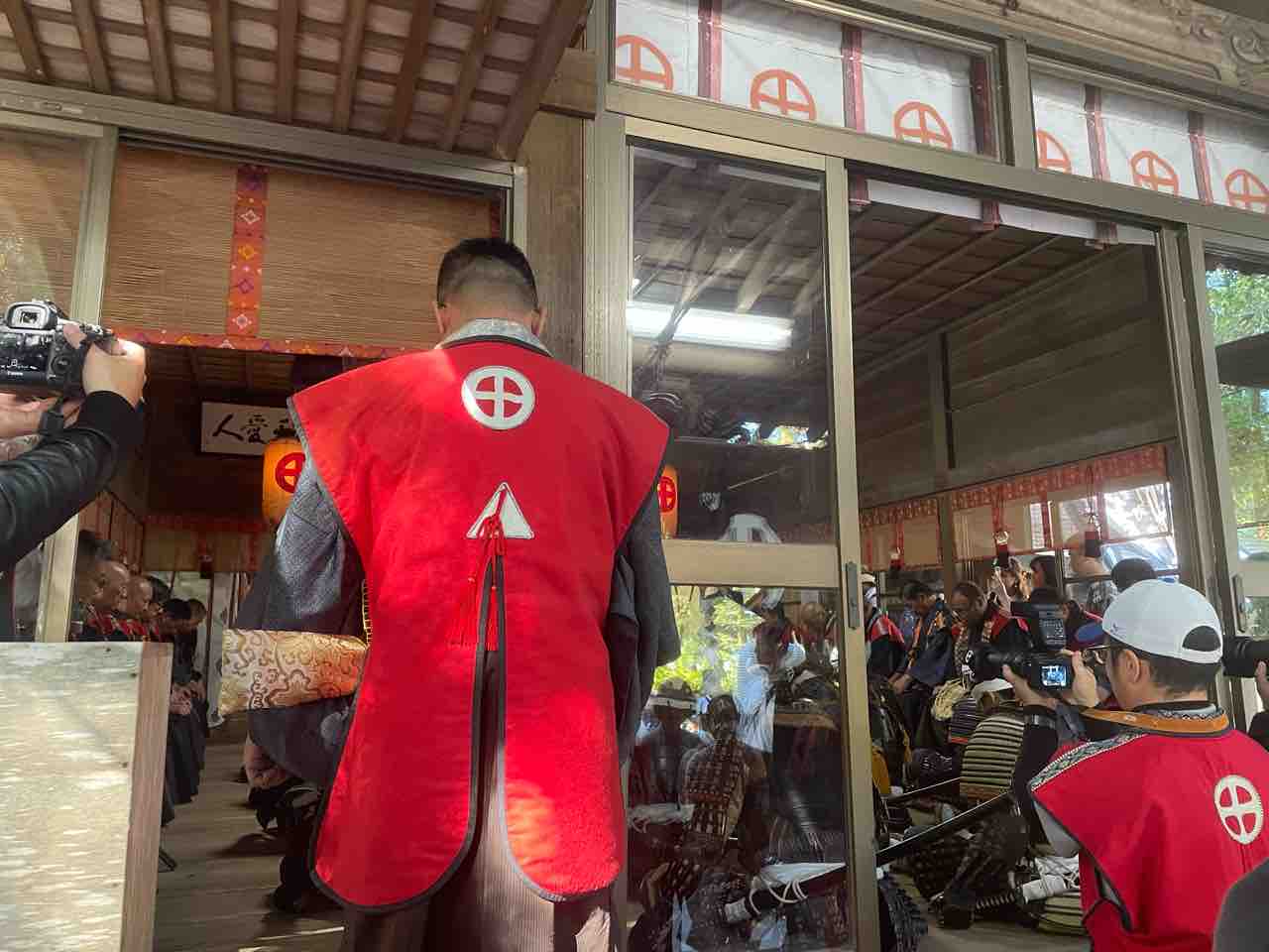 最後に記念撮影が行われ、神社をあとにする武者たち