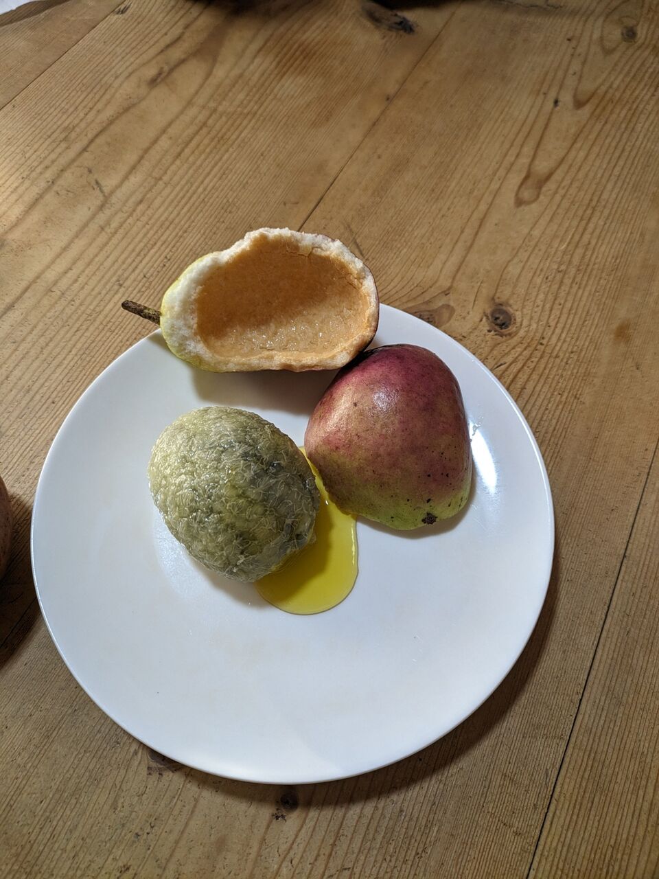スプーンで食べました。 オリーブオイルの爽やかな草っぽさの香りとウンべの甘さがナイスです。