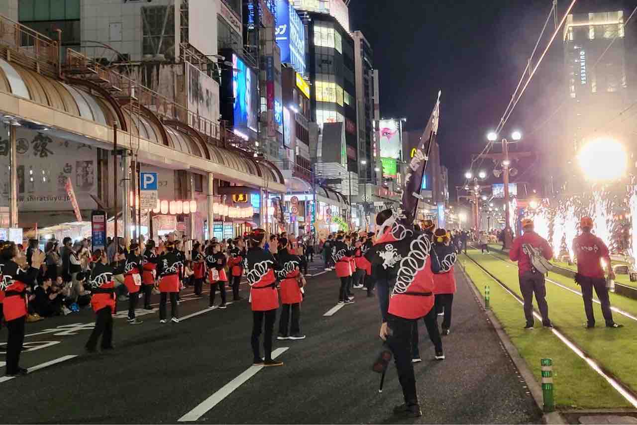 片側3車線のメインストリートを貸し切って総勢1万人近くが踊り狂う、鹿児島最大のダンスイベントなのだ!
