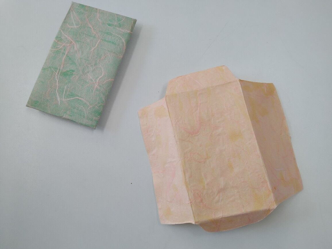 ポチ袋自体も紙を貼り合わせるところから作られた手作りのもの。