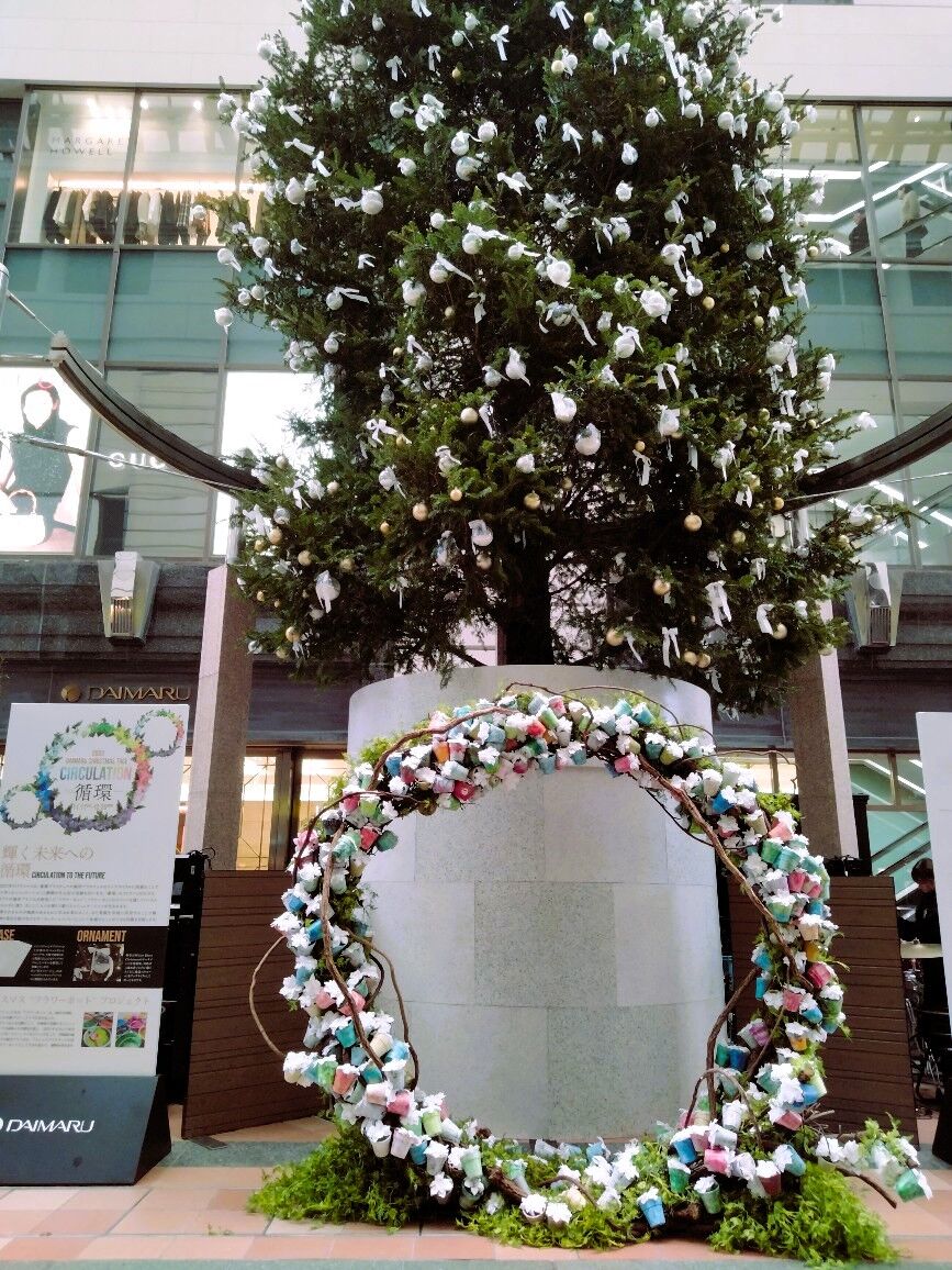 福岡県の博多大丸のクリスマスツリーの今年のテーマは「Circulation(循環)」。