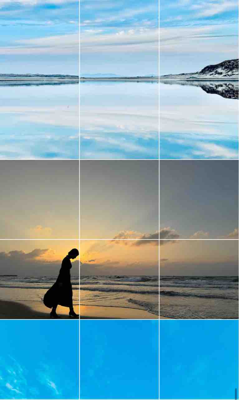 この写真、吹上浜で撮った写真です。色だけちょっとレタッチしていますが、水に反射してこんなに綺麗な写真が撮れます。砂丘にある空を写す鏡、これはまさに「砂上の鏡」と呼べるでしょう。