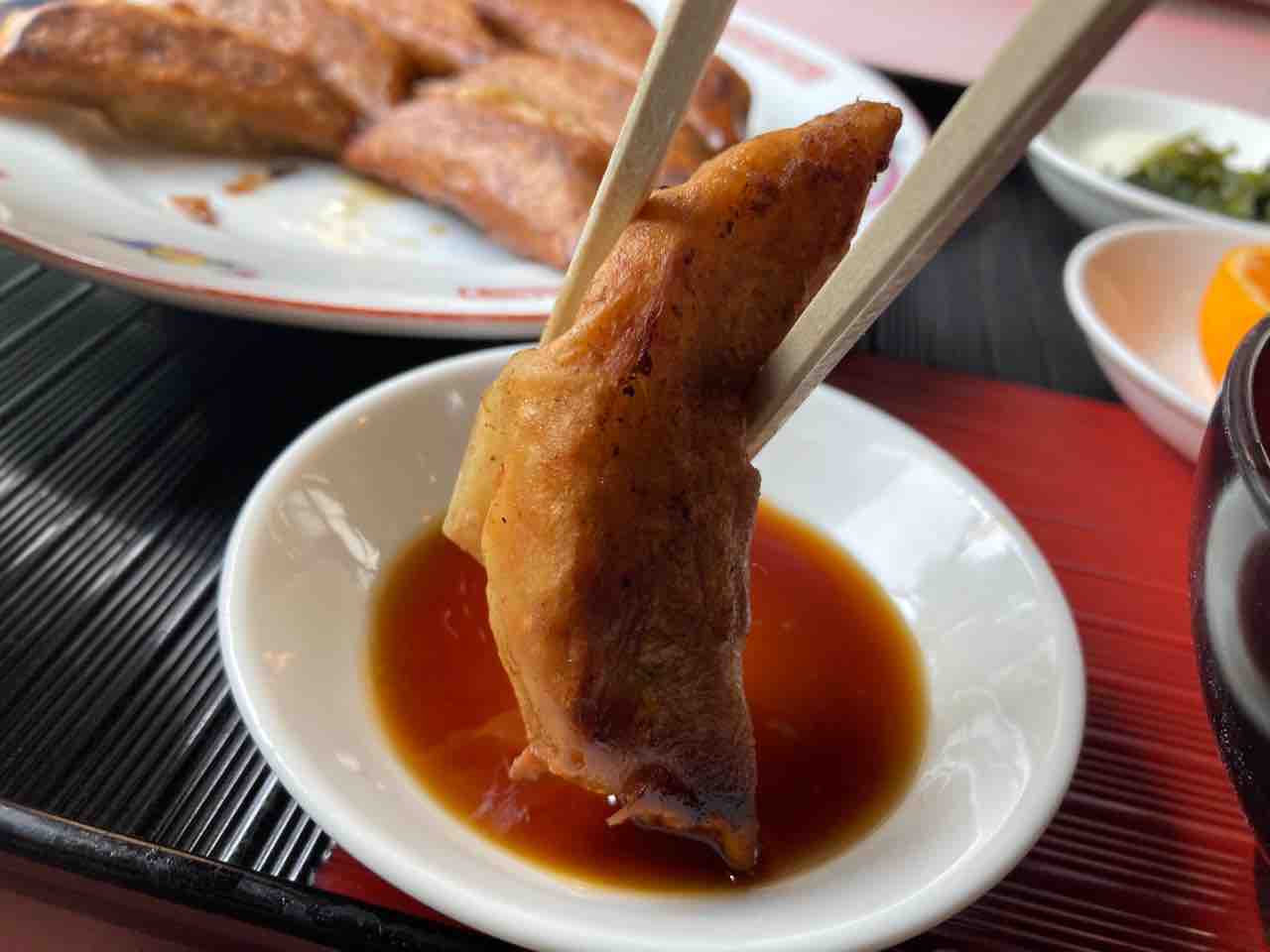 揚げ餃子と焼き餃子の間という感じでしょうか。